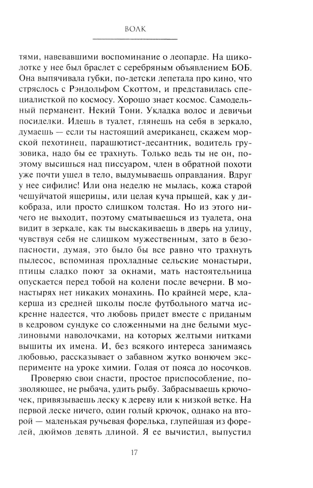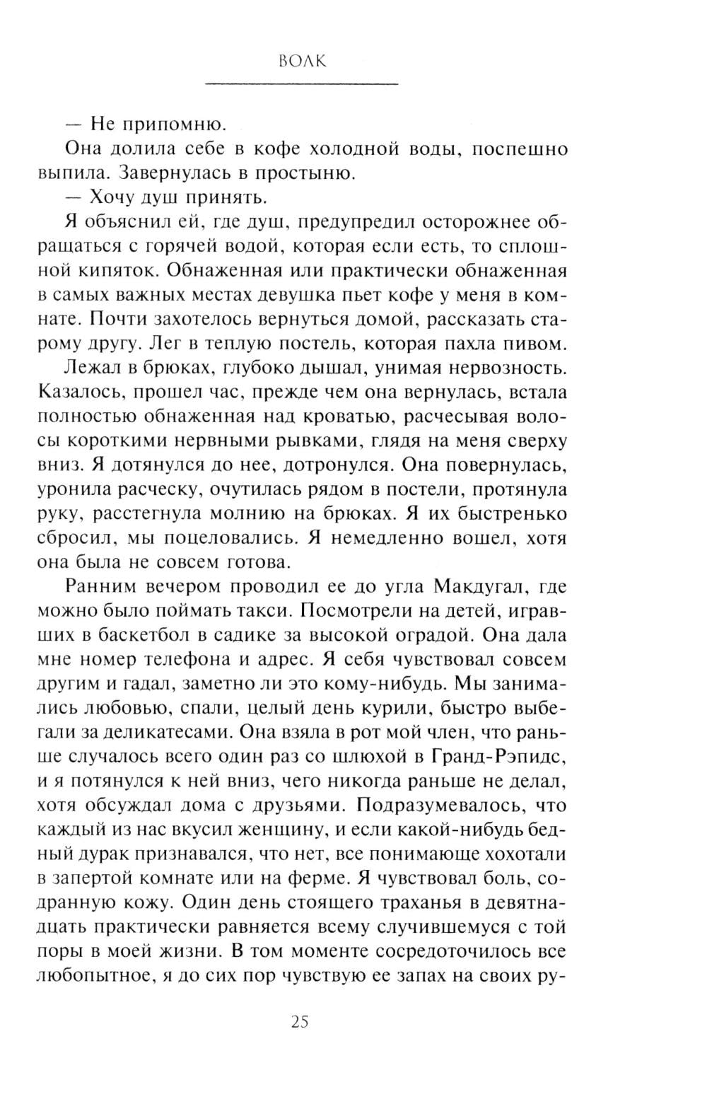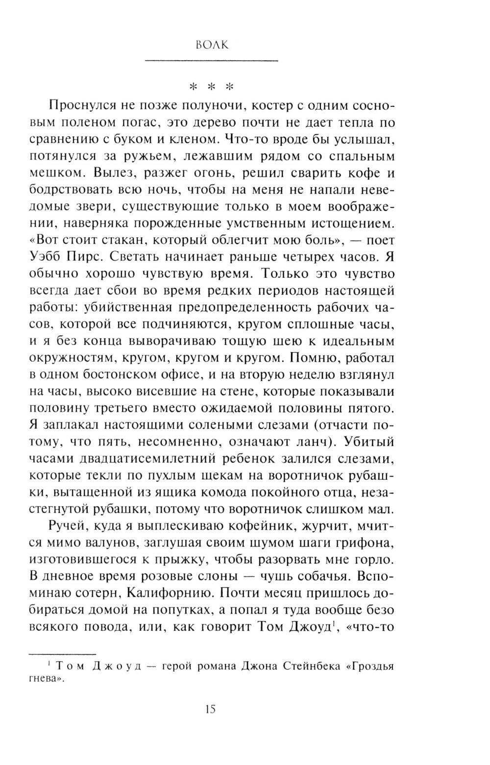 В романе одного из самых признанных, как читателями, так и критиками, современных американских писателей рассказана история потомка эмигрантов из Швеции, который отправляется в дикий лес Северного Мичигана в надежде увидеть последнего в здешних местах волка. Главный герой разочаровался в жизни, ничто не доставляет ему удовольствия: ни женщины, ни общение с друзьями, ни хмельные компании.