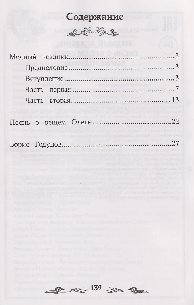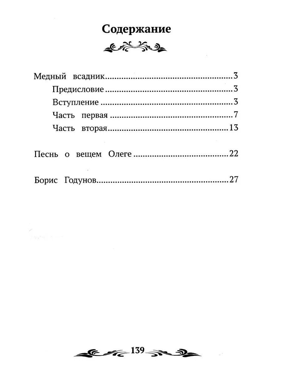 В данную книгу вошли три самых разноплановых произведения: поэма "Медный всадник", повествующая о трагичной судьбе рядового служащего Евгения после наводнения 1824 года в Санкт-Петербурге (без цензурных правок поэма была опубликована впервые только в 1904 году); баллада "Песнь о Вещем Олеге", главная мысль которой заключается в том, что человек бессилен перед судьбой, как бы он не пытался избежать своей участи; драма "Борис Годунов", посвященная событиям Смутного времени в России; периоду правления Бориса Годунова и вторжению Лжедмитрия I. Эта драма была написана автором в 1825 году во время ссылки в Михайловское.