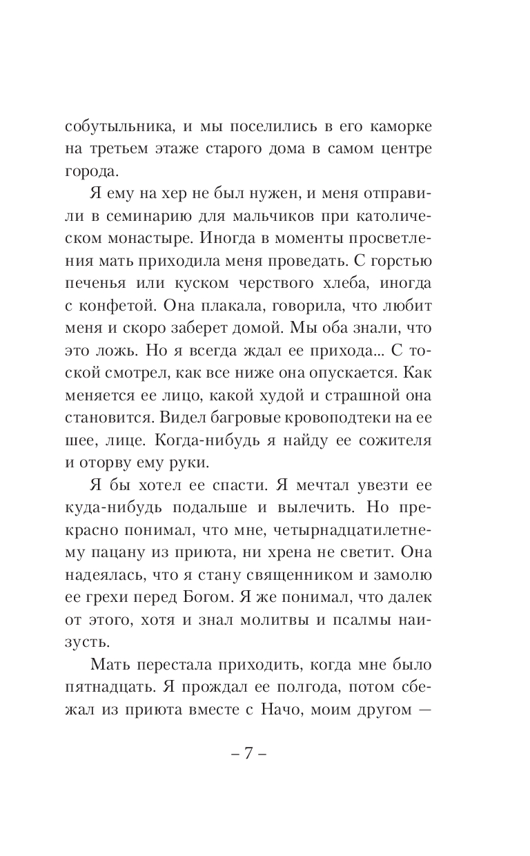 Я влюбилась в них обоих… в дьявольски красивого католического священника, который никогда не сможет быть со мной, которого я никогда не смогу любить открыто, и в странника в капюшоне, лица которого никогда не видела. Я прошу его уйти и не преследовать меня, но он появляется снова и снова. Подбирается все ближе и ближе. И иногда мне до боли хочется, чтобы он дотронулся до меня… пусть даже лезвием ножа, которое сверкает в его руке.