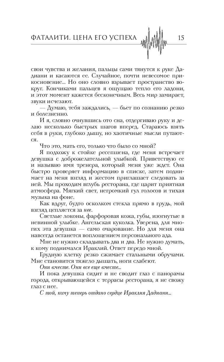 Шесть лет назад я предала того, кого любила всем сердцем. Разрушила свою прежнюю жизнь и построила новую в другой стране. Но судьба сыграла со мной злую шутку, и я была вынуждена вернуться в родной город, где встретилась лицом к лицу с Ираклием Дадиани – человеком, ради которого пожертвовала всем. Он стал успешным и недосягаемым мужчиной, а я лишь тенью его прошлого. Хватит ли мне сил противостоять собственным чувствам? Или я сдамся и вновь сломаю жизнь любимому человеку, обрушив на него правду о цене его успеха?