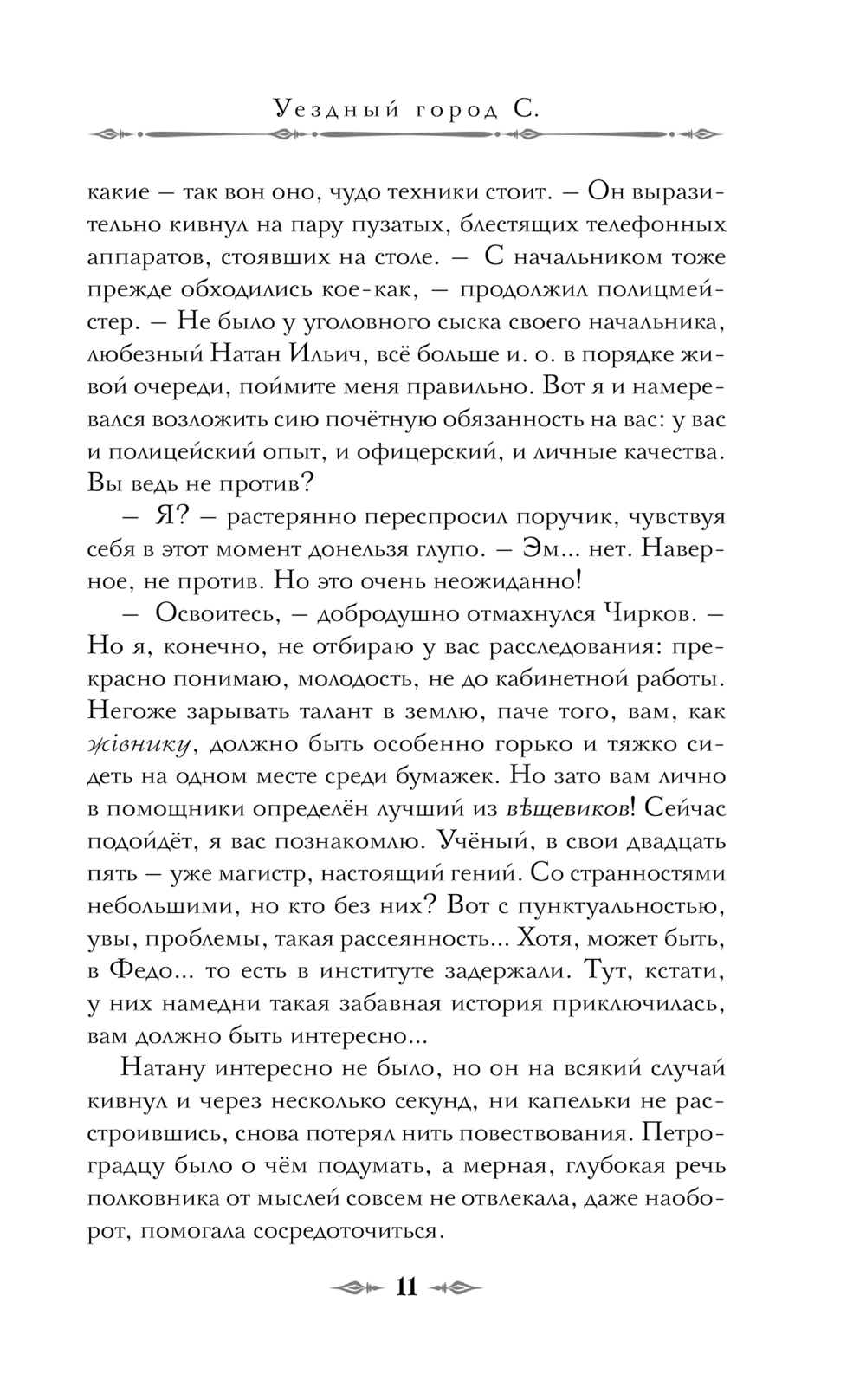Уездный город С*** кажется тихим, почти забытым уголком Империи. Туда и направляют со строгим взысканием и понижением в звании петроградского поручика Натана Титова. Но на мирную жизнь в провинции можно не рассчитывать: вскоре на мысу находят тело молодой женщины в странной позе. Вместе с эксцентричной напарницей, которая умеет управлять сутью вещей, ему предстоит раскрыть дело, в котором переплелись преступление, магия и старые тайны.