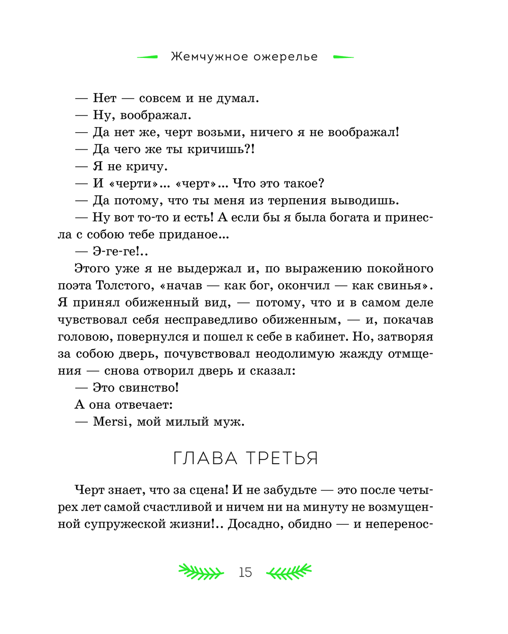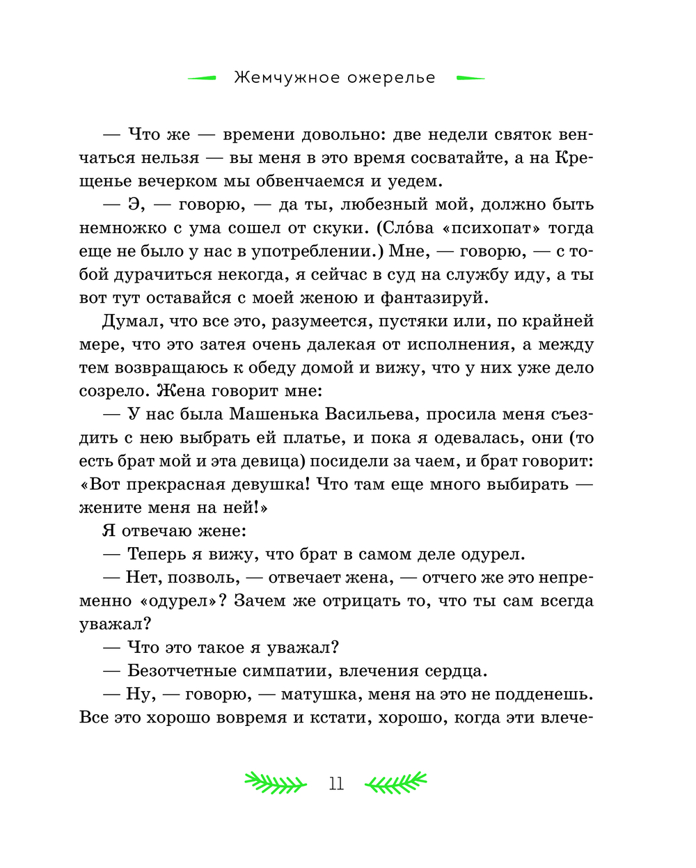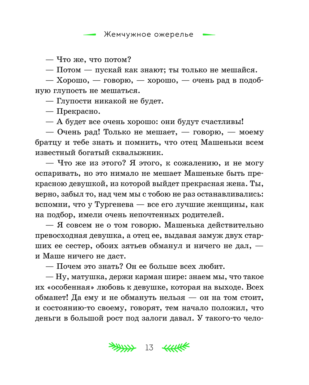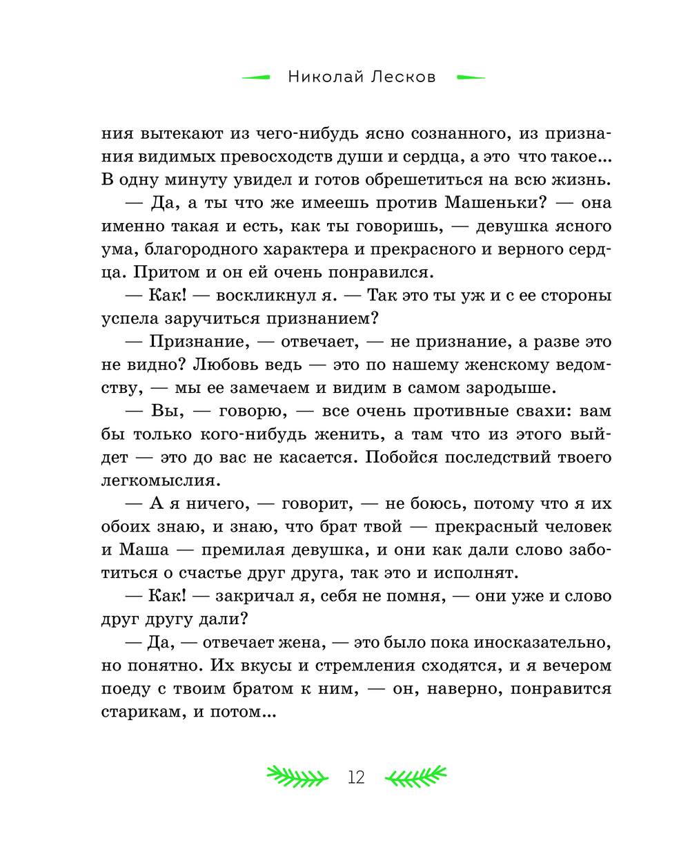 В литературном наследии Николая Семёновича Лескова святочные рассказы занимают особое место. Они стали призванием писателя – Лесков расширил традиционный жанр и дал ему новую жизнь. Персонажи его произведений – представители разных слоёв русского общества: помещики, чиновники, священники, купцы, военные и крестьяне. Для героя "Жемчужного ожерелья" случайная встреча стала прологом семейного счастья. "Неразменный рубль" рассказывает удивительную историю про маленького Колю и волшебную монету, "Отборное зерно" знакомит читателя с "правильным на вид" мужиком Иваном Петровым, помогающим двум плутам и мошенникам довести до завершения задуманную ими аферу, а "Пугало" повествует о злоключениях горожанина Селивана, которого людская молва волею случая записала в злодеи и колдуны. Рассказ "Зверь" показывает крепкую дружбу медведя и крестьянина, выстоявшая даже перед самодуром помещиком. Эти и другие рассказы в книге ведут к размышлению о природе добра и зла в человеке, о присутствии Бога в судьбе любого из нас, к переживаниям за жизни героев и их испытаниям.