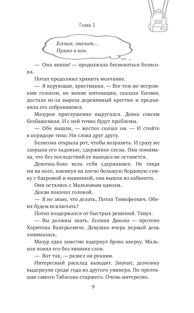 Потап Мазуров, молодой владелец престижного университета, привык к тому, что против его характера мало кто может выстоять. Но, столкнувшись с детдомовской воспитанницей Есенией, за скромным видом которой скрывается талант к химии и несгибаемая воля к жизни, меняет своё мнение.