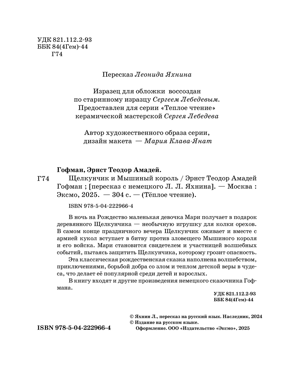 В книгу входят и другие произведения немецкого сказочника Гофмана.
