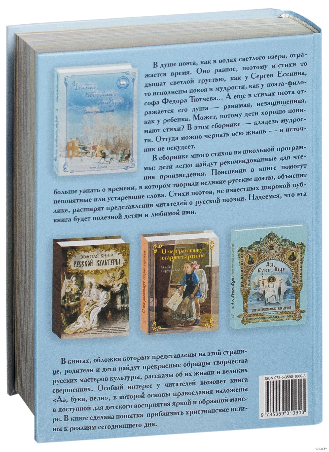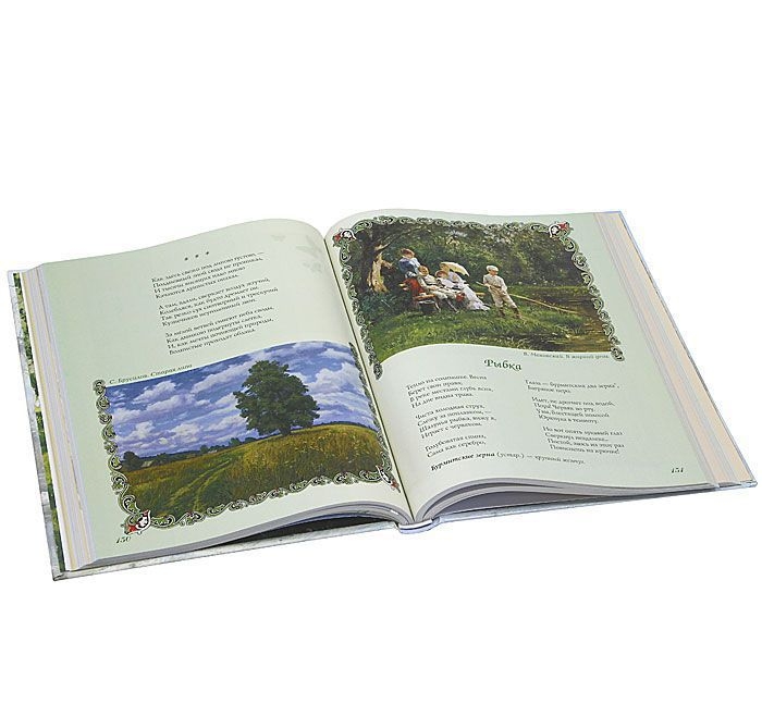 Отличная книга! Чудесная подборка стихотворений самых известных русских поэтов прошлого, иллюстрирована репродукциями замечательных художников, плотная офсетная бумага, крупный шрифт, формат большой (почти А4). Рекомендую!