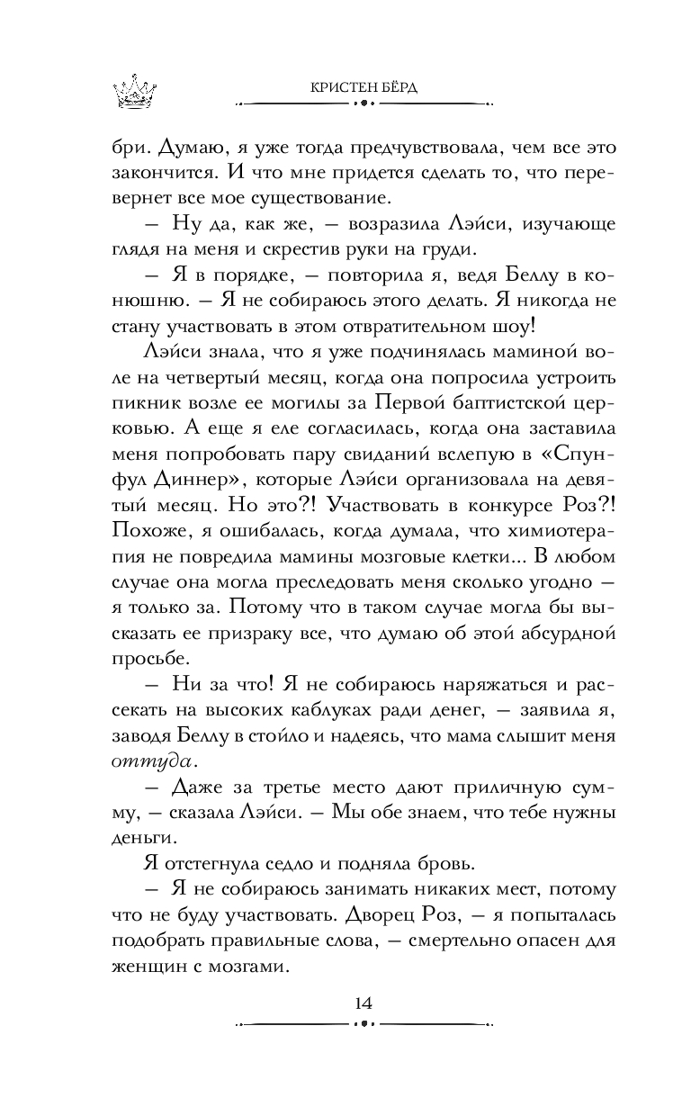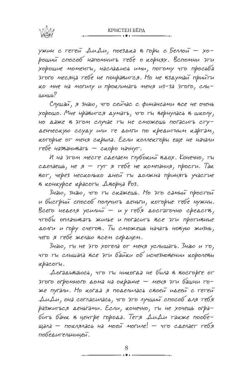Дакота Грин скорее бы согласилась участвовать в "Голодных играх", чем в ежегодном конкурсе красоты города Оберджин. Но последнее желание её покойной матери вынуждает её сменить рабочие сапоги на шпильки и раскрыть давнюю тайну пропавшей королевы красоты.