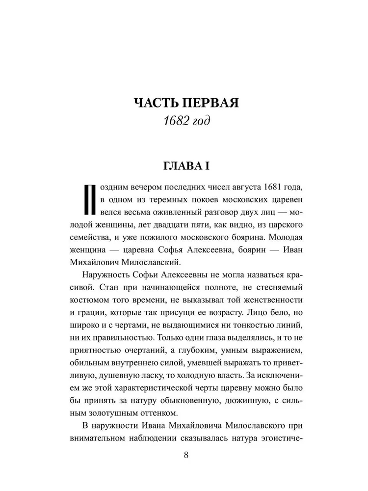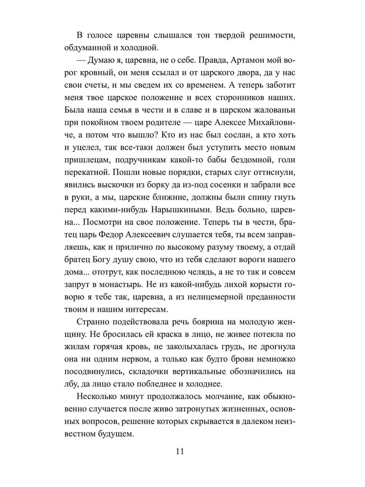Последняя четверть XVII века. Хорошо царевне Софье Алексеевне жить при брате Федоре, унаследовавшем российский престол. Брат слаб здоровьем и скудоумен, поэтому в государственных делах доверяет советам мудрой и образованной сестры. А Софья только рада. Слушать боярские доклады вместе с братом-царем ей нравится гораздо больше, чем сидеть в своих комнатах за пяльцами.