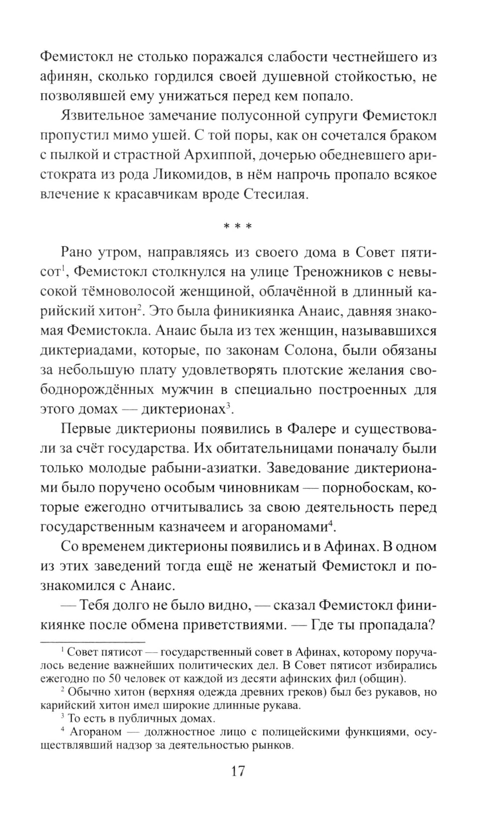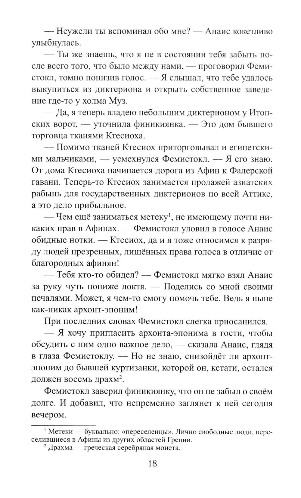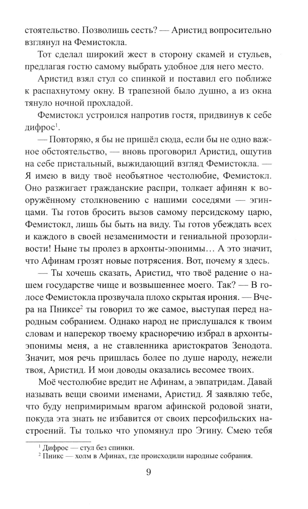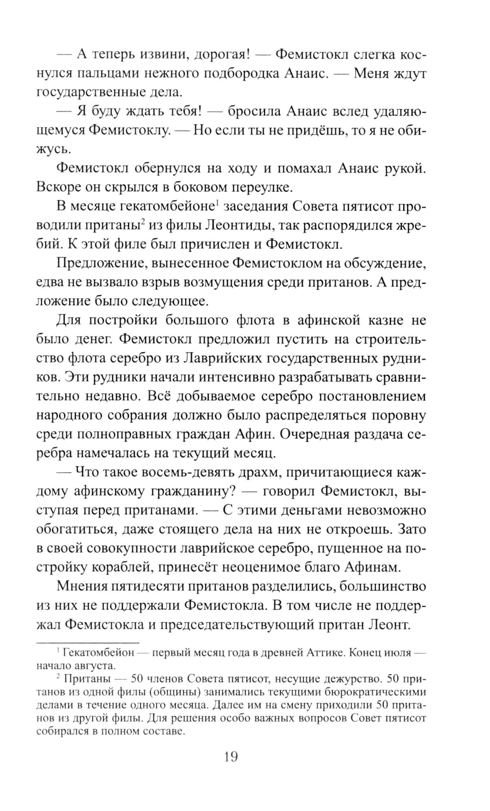 Он часто использует сомнительные методы. Например, нанимает продажных женщин, чтобы те своей прелестью заставляли политических соперников Фемистокла забыть обо всём и пропустить голосование по важному вопросу. Но главное – такие методы приносят пользу большинству афинян, а не кучке аристократов. Поэтому Фемистокла любит народ. И кто знает, чем закончилось бы знаменитое сражение с персидским флотом в Саламинском проливе, если бы Фемистокл в очередной раз не использовал сомнительные методы ради блага Афин и всей Греции.