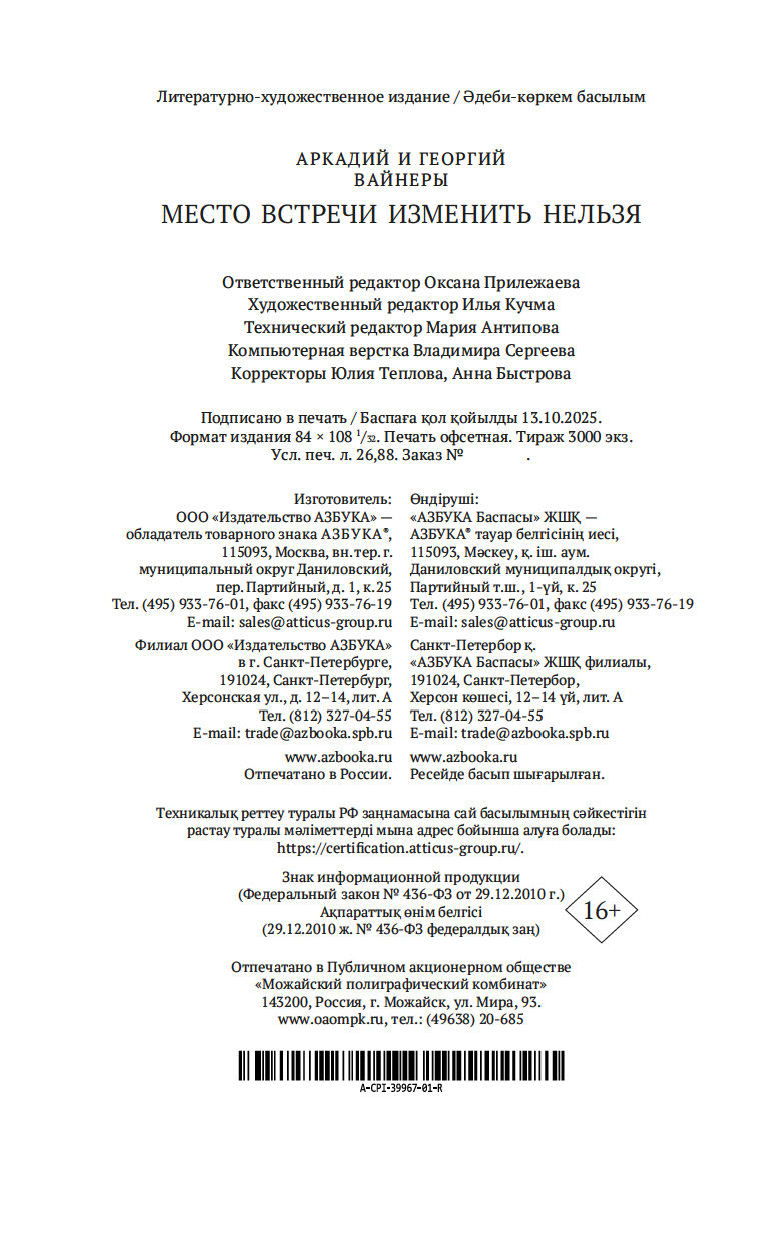 | Изготовитель | ЗАО "Азбука". 198096, РФ, г. Санкт-Петербург, ул. Решетникова, д. 15 |