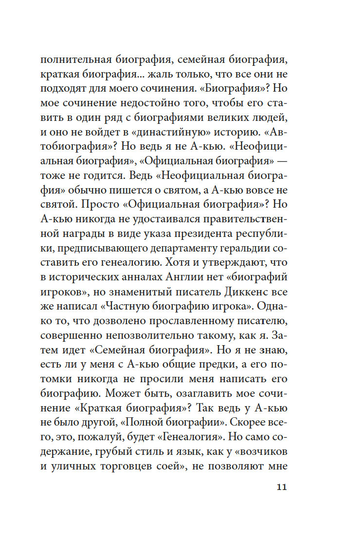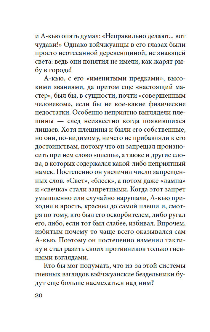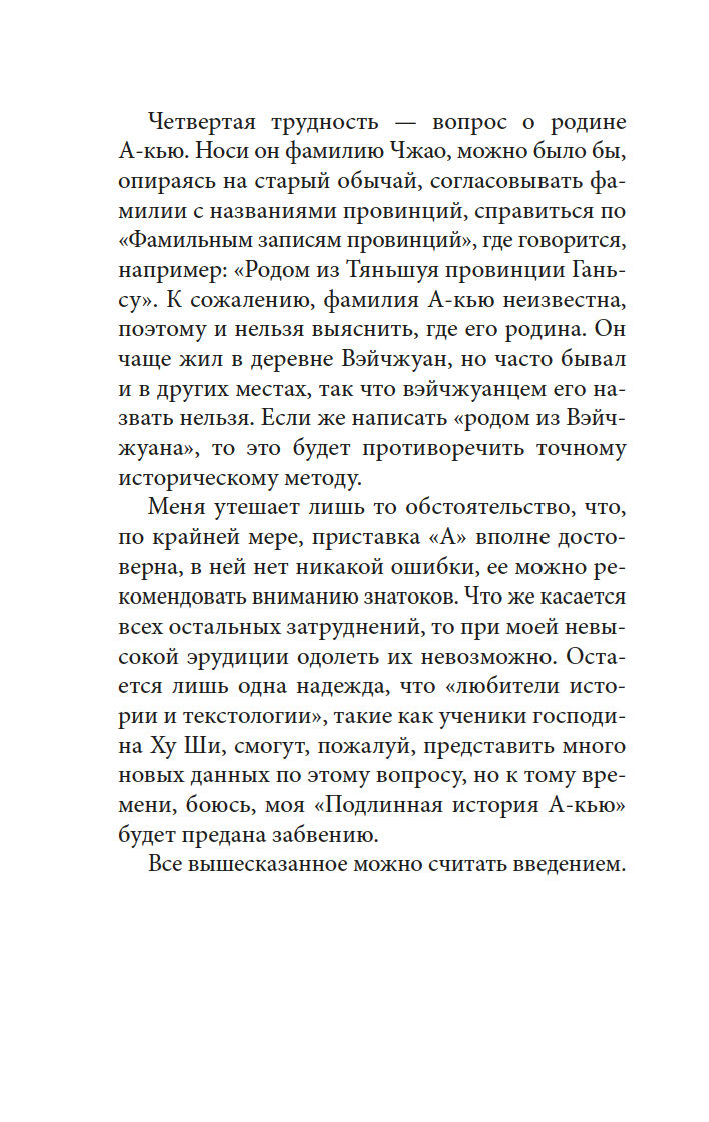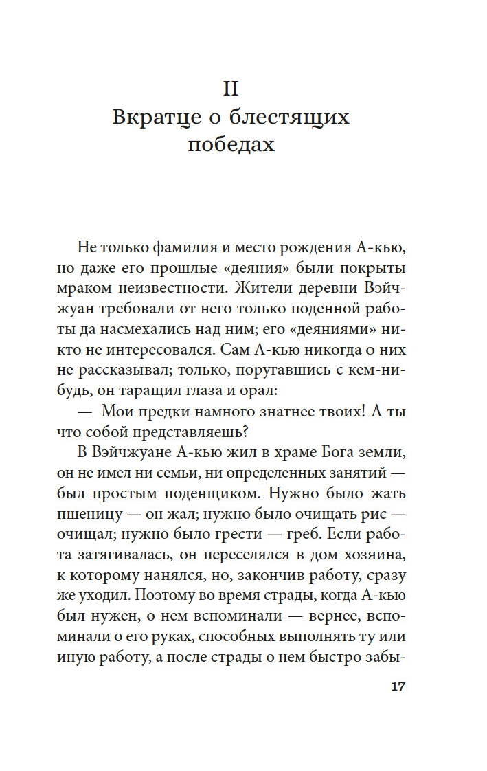 "Подлинная история А-кью" – маленький шедевр китайской литературы начала XX века, первое произведение, в полной мере раскрывающее богатство разговорного китайского языка. Повесть моментально получила международное признание и вывела творчество Лу Синя на мировой уровень. Она была переведена более чем на тридцать языков, вошла в список 100 величайших историй всех времен по версии BBC и стала основой многочисленных адаптаций – драматических постановок, фильмов и даже балетов.