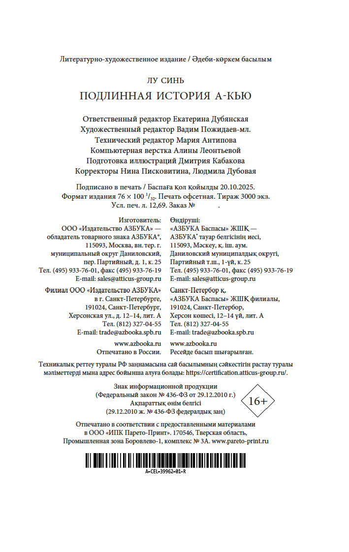 В настоящем издании "Подлинная история А-кью" выходит с оригинальными иллюстрациями китайского художника-графика Фэн Цзыкая. Помимо заглавной повести, в книгу входят избранные рассказы Лу Синя.