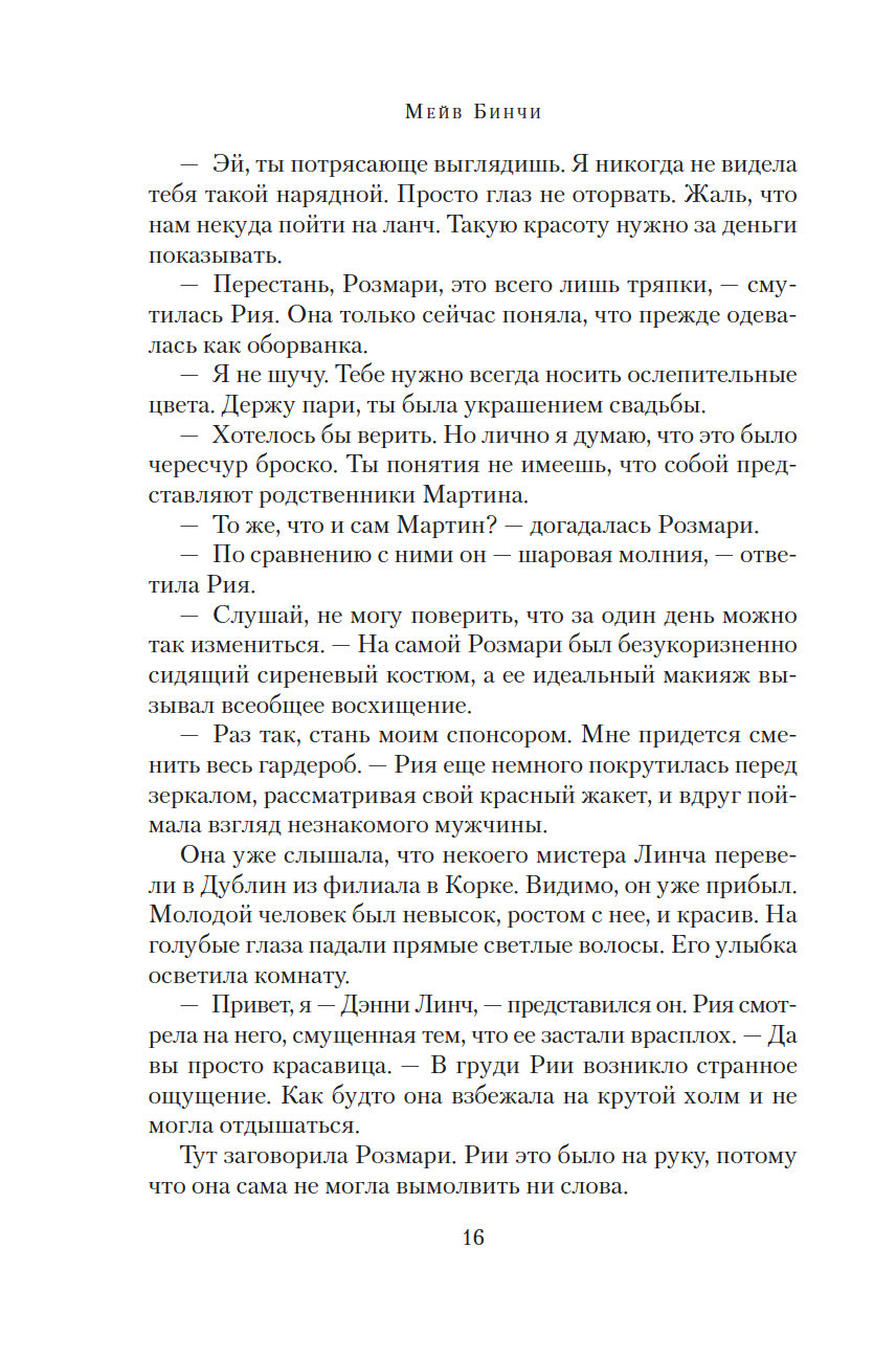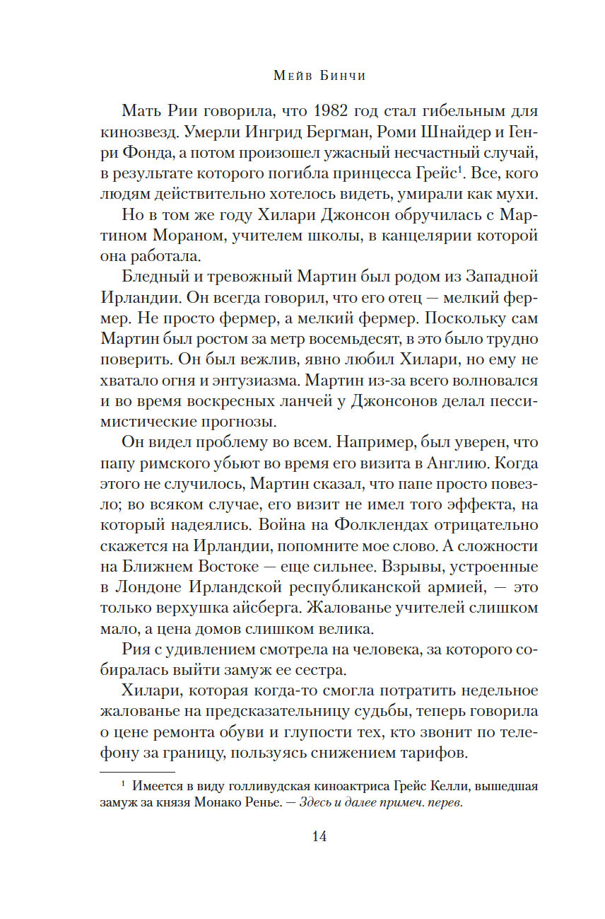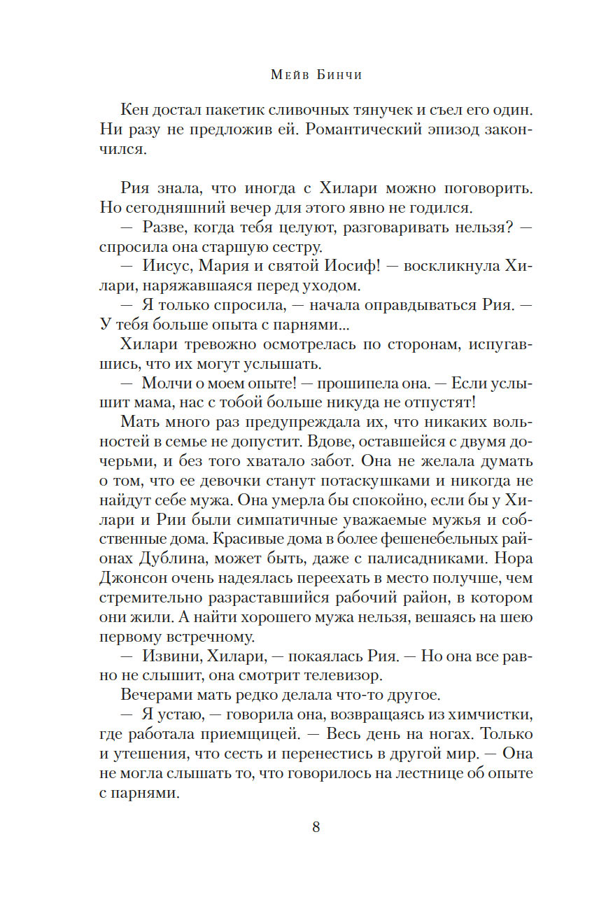 Ирландская писательница и журналистка Мейв Бинчи (1940-2012) хорошо известна не только на своей родине, но и во всем мире. Перу Бинчи, помимо рассказов, принадлежит более полутора десятков романов, ее книги неизменно становились бестселлерами и не раз получали престижные международные премии. В 1970-х годах Бинчи опубликовала три сборника рассказов, и довольно успешно, но настоящая слава пришла к ней после выхода первого романа "Зажги свечу" (1982).
