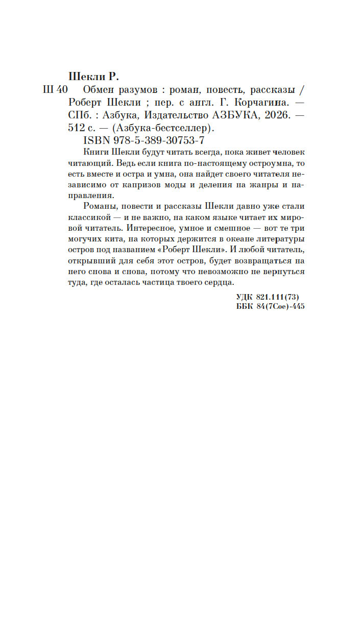 Книги Шекли будут читать всегда, пока живет человек читающий. Ведь если книга по-настоящему остроумна, то есть вместе и остра и умна, она найдет своего читателя независимо от капризов моды и деления на жанры и направления.