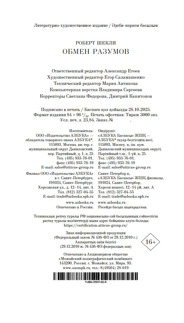 | Изготовитель | ЗАО "Азбука". 198096, РФ, г. Санкт-Петербург, ул. Решетникова, д. 15 |