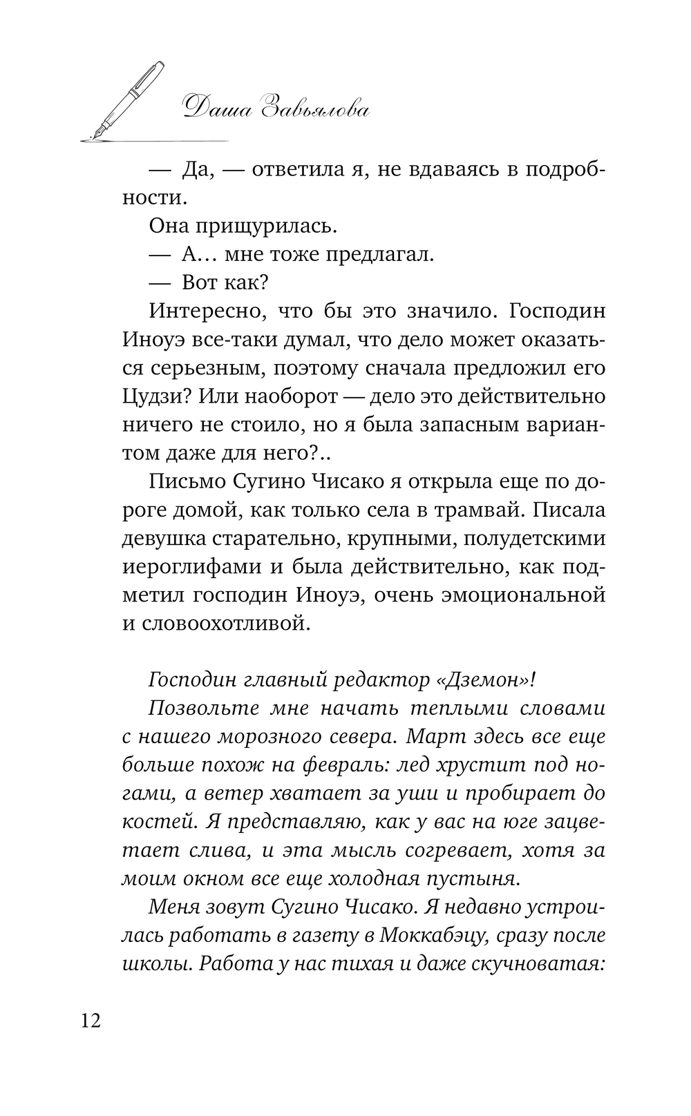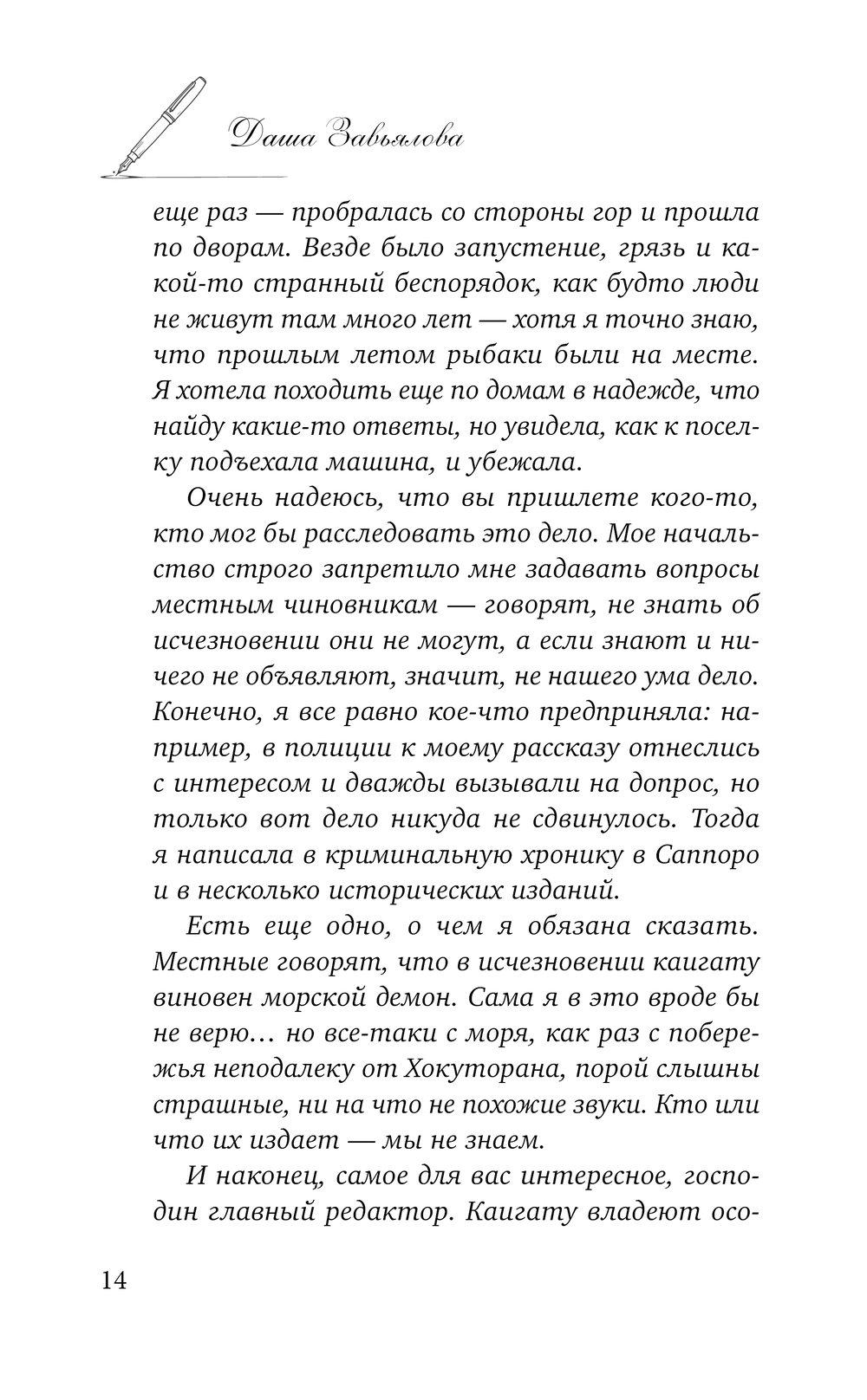 По редакционному заданию Арисима Эмилия покидает Киото и отправляется на самый север Японии, где целиком исчез народ каигату. Одни винят вспышку холеры, другие – морского обакэ, демона садзаэ-они. Но Эмилия быстро понимает, что разгадка куда страшнее. Распутывая это непростое дело на краю света, девушка и сама оказывается в опасности.