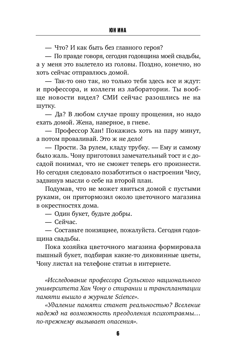 Это событие всколыхнуло СМИ. Профессор Сеульского национального университета Хан Чону разработал методику стирания воспоминаний и их пересадки от одного человека к другому. Он стал знаменитостью в научных кругах. Однако вскоре произошло то, что перевернуло его жизнь еще раз…