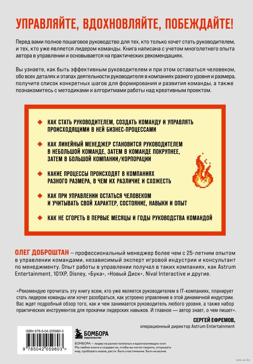 Эта книга – практическое руководство по развитию навыков руководителя в IT-компаниях, подходящее как для начинающих, так и для опытных лидеров. Автор делится своим многолетним опытом и предлагает конкретные рекомендации о том, как эффективно управлять командой, сохраняя при этом человечность. Читатели узнают о ключевых этапах руководства, методах работы над креативными проектами и способах избежать выгорания. Книга будет полезна не только представителям IT-индустрии, но и всем, кто стремится стать успешным руководителем.