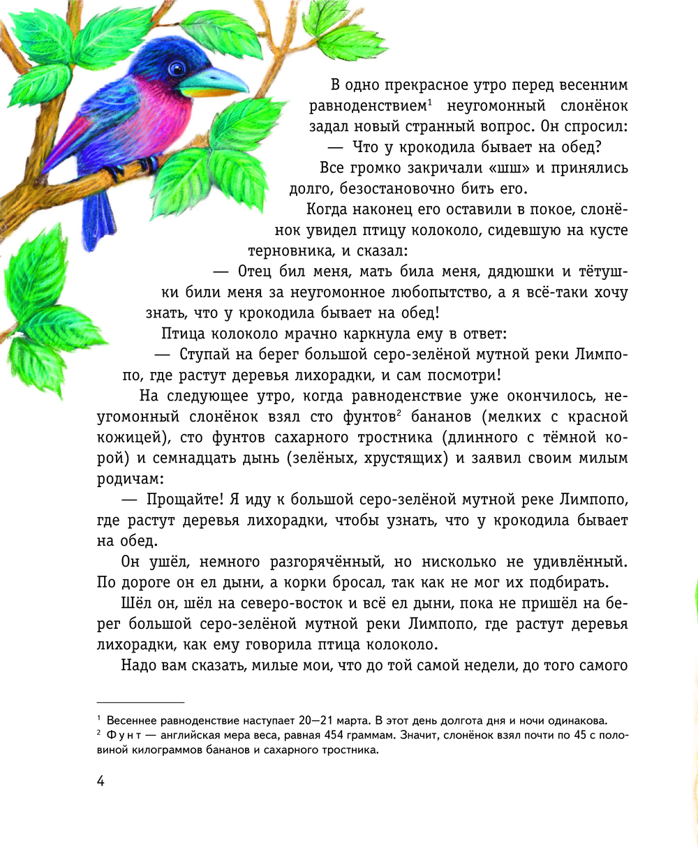 В сборник вошли самые известные сказки Редьярда Киплинга о животных: "Слонёнок", "Как верблюд получил свои пятна", "Как кот гулял, где ему вздумается", "Рикки-Тикки-Тави" и другие замечательные истории. Страницы украшены нежными иллюстрациями российской детской художницы Ксении Павловой.