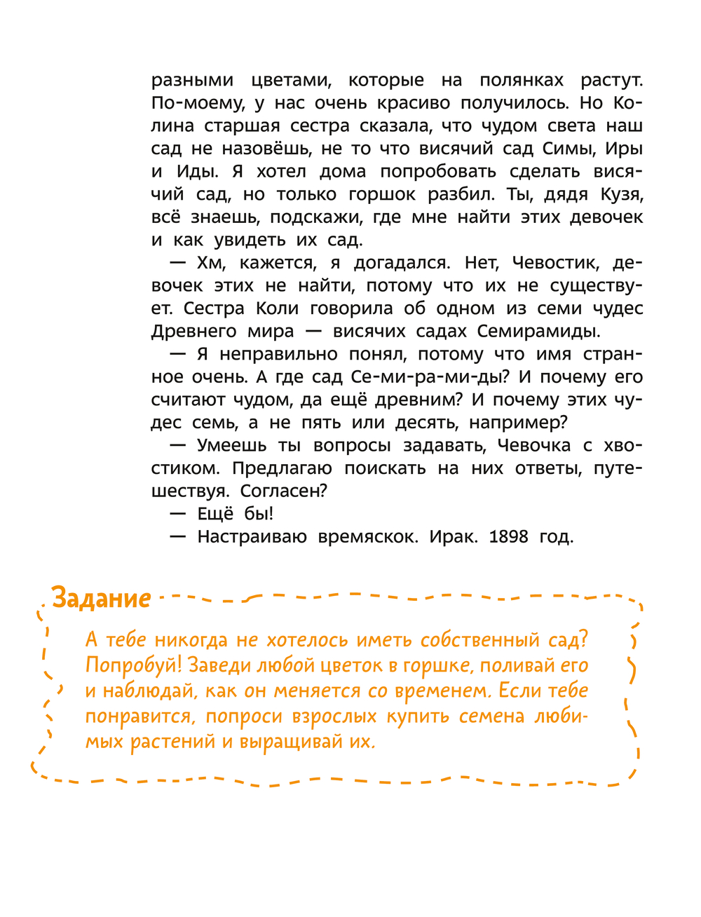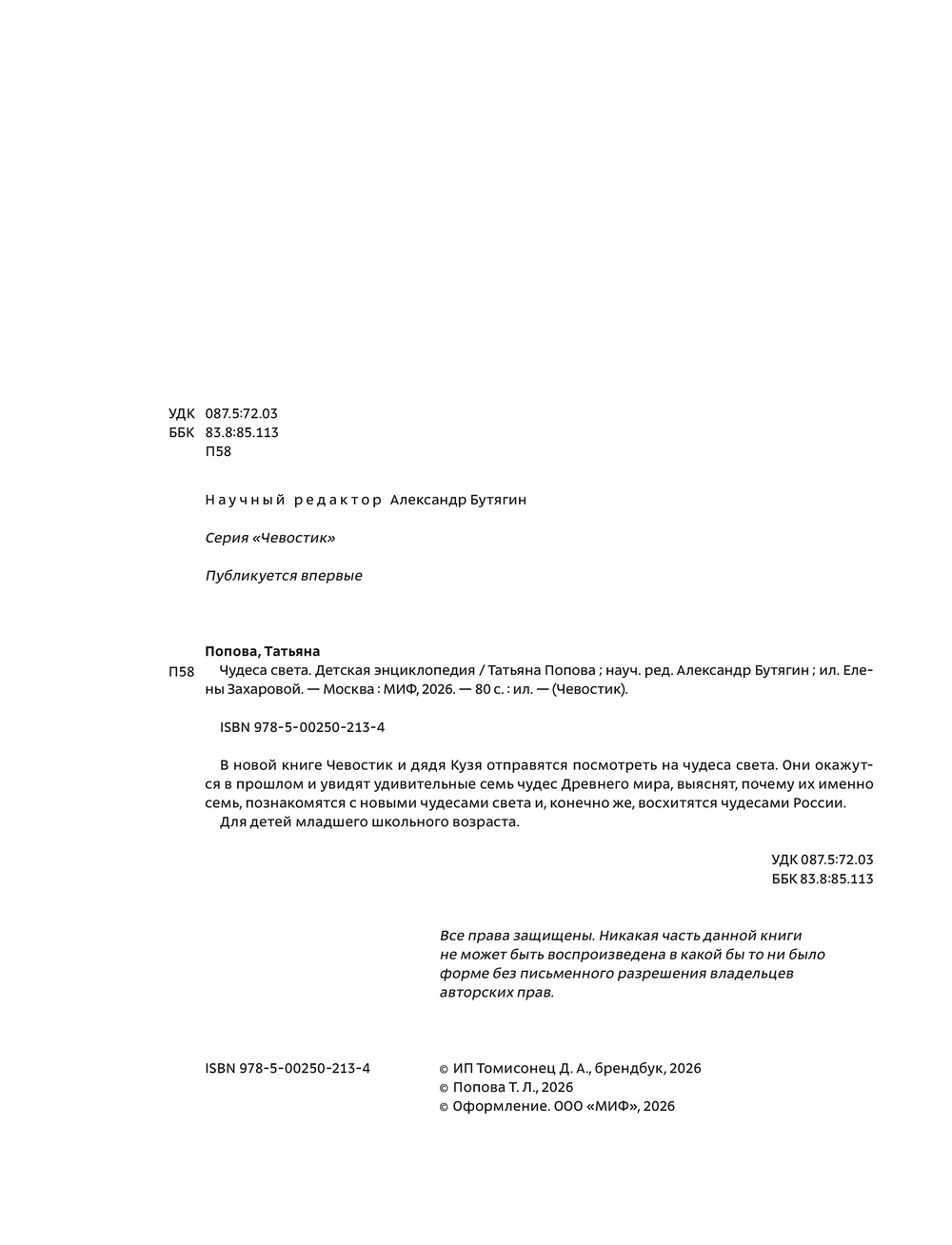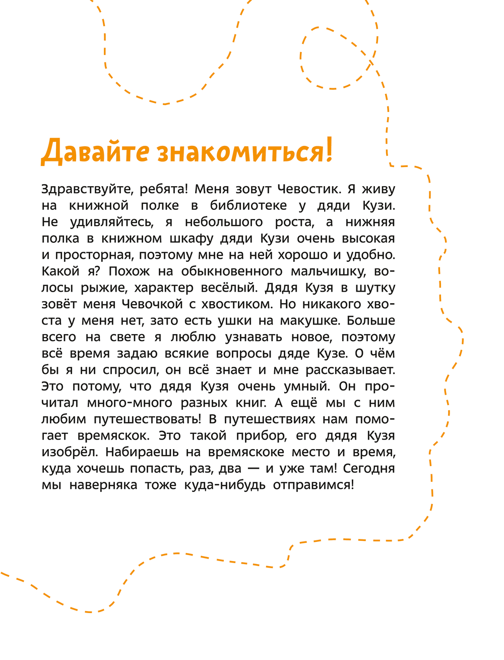 В новой энциклопедии Чевостик и дядя Кузя отправляются в захватывающее путешествие к чудесам света. Они перенесутся на тысячи лет в прошлое и своими глазами увидят чудеса Древнего мира, затем вернутся в наше время и узнают, что считают новыми чудесами света и, конечно же, полюбуются чудесами России. Отправляйся в удивительно красивое путешествие вместе с любимыми героями!