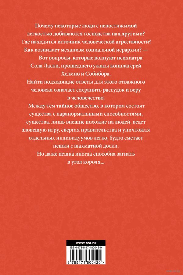 Между тем тайное общество, в котором состоят существа с паранормальными способностями, существа, лишь внешне похожие на людей, ведет зловещую игру, свергая правительства и уничтожая отдельных индивидуумов легко, будто сметает пешки с шахматной доски.