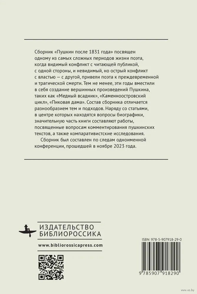 Сборник "Пушкин после 1831 года" посвящен одному из самых сложных периодов жизни поэта, когда видимый конфликт с читающей публикой, с одной стороны, и невидимый, но острый конфликт с властью – с другой, привели поэта к преждевременной и трагической смерти.