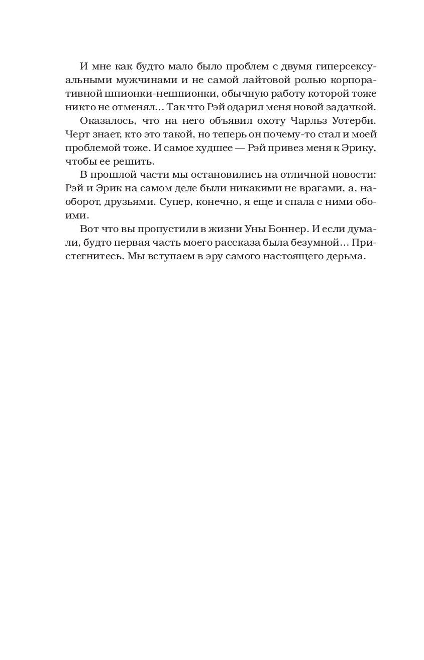 Вчерашняя аферистка и сегодняшний аналитик года Уна Боннер виртуозно балансирует на грани фола в романе сразу с двумя мужчинами – Эриком и Рэем, и, что особенно приятно, ни один из них пока не в курсе. Главное – не перепутать, кто сегодня "единственный и неповторимый".