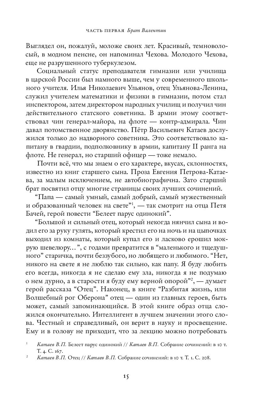 Валентина Катаева считают циником и конформистом, совершенно лояльным большевистской власти. Но в советской литературе не найти столь же последовательного сторонника "чистого искусства". Он демонстрировал верность власти, но до самой смерти Сталина вел себя так, чтобы его даже в партию не приняли. Катаев – одинокий парус в родном ему Черном море.