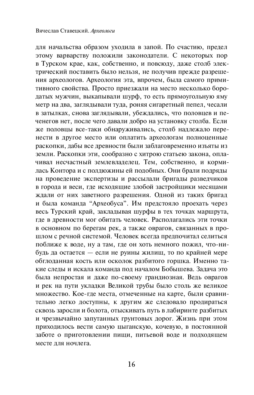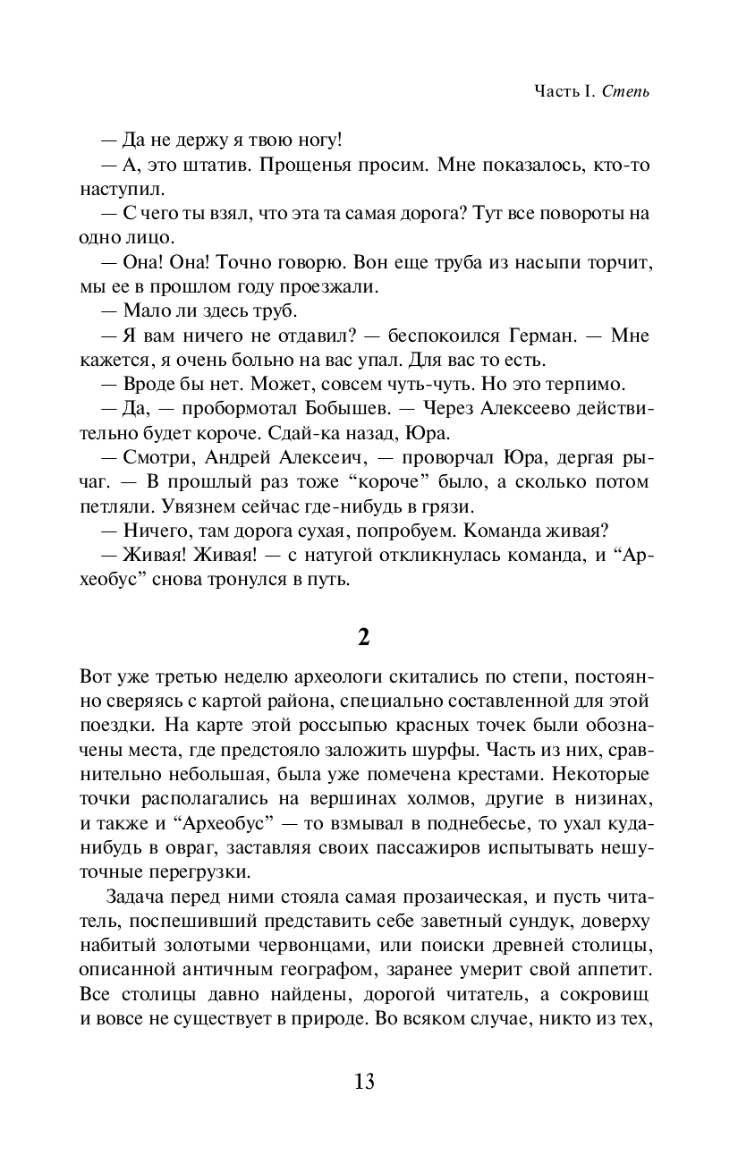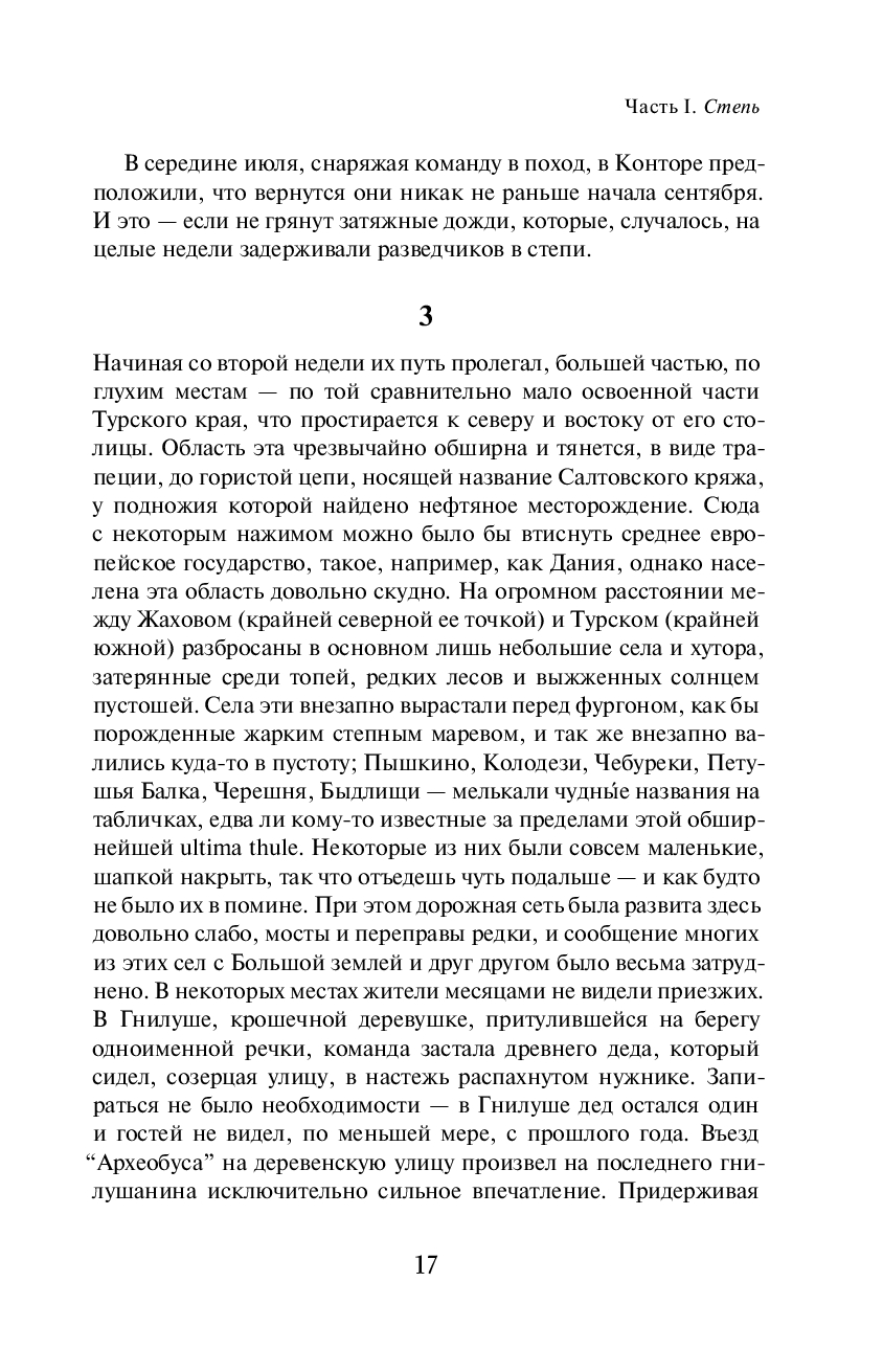 Жаркий, засушливый август, предположительно наши дни. Дикий и обманчиво безмятежный простор необъятной русской степи. По пустынным грунтовым дорогам мчится "Археобус", пыльный фургон, в котором путешествует Команда – бригада из шести археологов, выполняющих задание некоей Конторы. Они – разведчики: им предстоит исследовать берега многочисленных оврагов и рек, в поисках мест, где некогда обитал человек. Но под напором некоторых грозных внешних событий их путешествие станет больше, чем просто экспедицией, и превратится для всех шестерых в трудную, а порой и опасную одиссею...