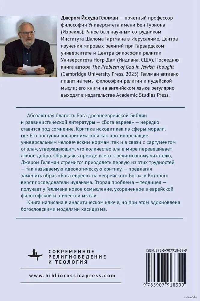 Обращаясь прежде всего к религиозному читателю, Джером Геллман стремится преодолеть первую из этих трудностей – так называемую идеологическую критику, – предлагая заменить образ "Бога евреев" на "еврейского Бога", в Которого верят последователи иудаизма. Вторая проблема – теодицея – получает у Геллмана новое осмысление, укорененное в еврейской философской и этической мысли. Книга написана в аналитическом ключе, но при этом вдохновлена богословскими моделями хасидизма.