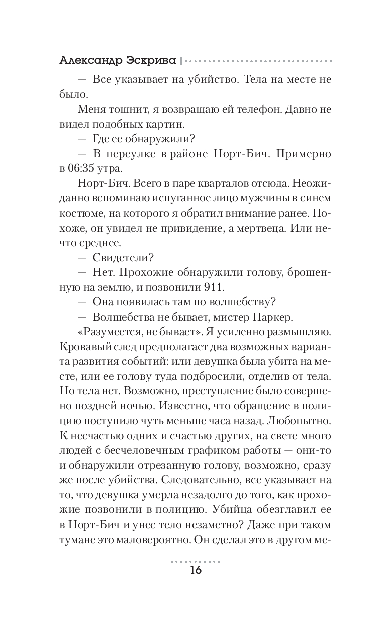 После травмирующего события инспектор Уильям Паркер отошел от дел. В прошлом лучший специалист-профайлер, теперь он не решается взглянуть страху в лицо. Лишь чудовищное преступление, произошедшее в Сан-Франциско, выводит его из оцепенения. Найден труп Сары Эванс, обнаженный и обезглавленный, поставленный на колени и связанный. Кто мог сотворить подобное зверство? Острый ум инспектора Паркера сразу определяет, что за первым ужасающим убийством последуют и другие.