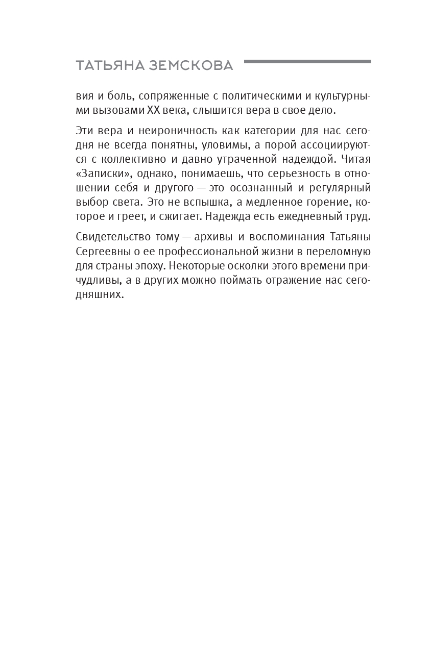 Тонкая проза Татьяны Земсковой, фиксирующая культурный пейзаж уходящей эпохи, рассказывает о знакомых читателю фигурах с новой, интимной стороны.