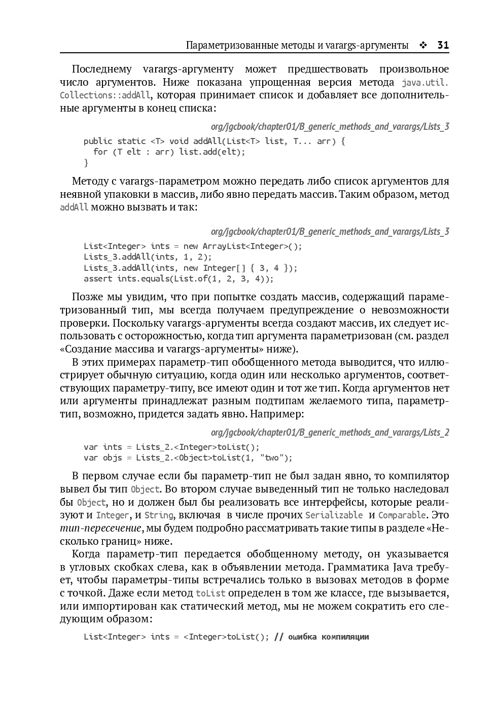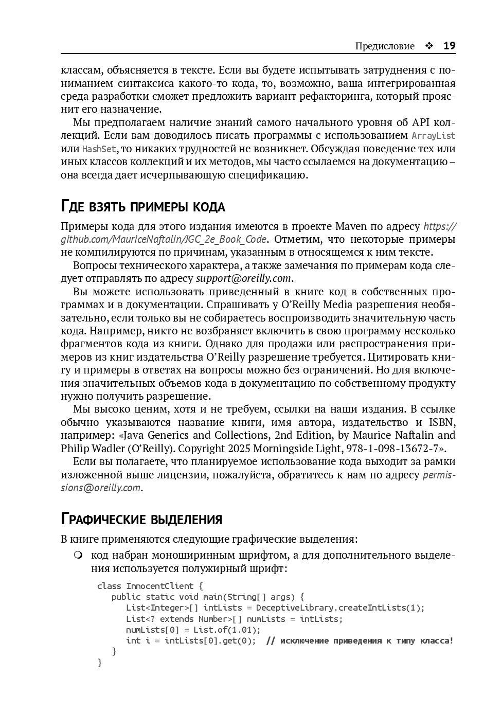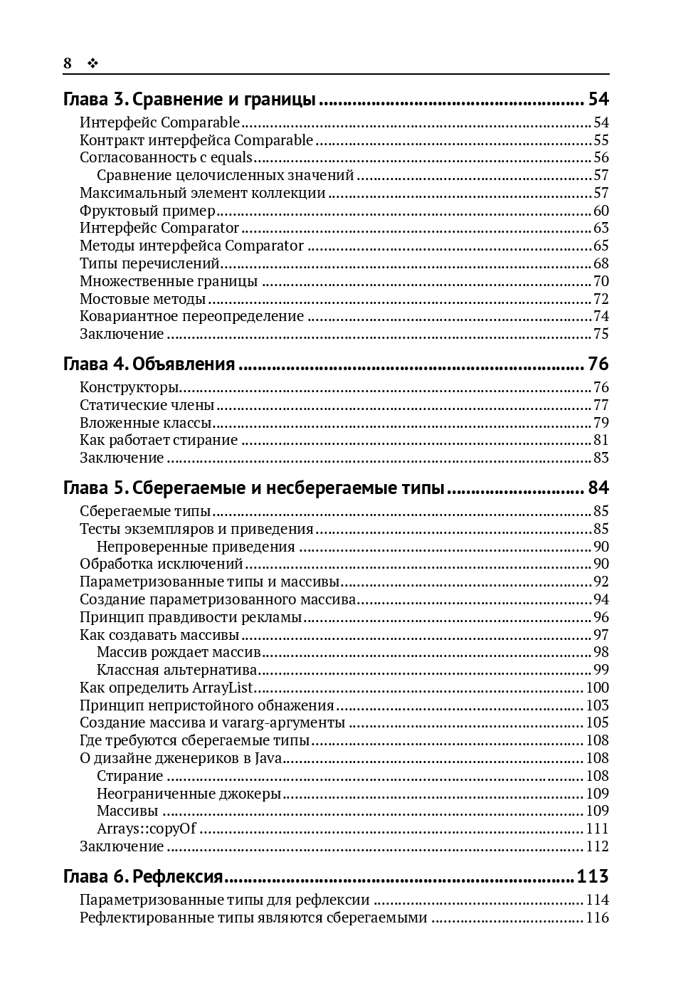 Это обновленное издание самого известного за последнее десятилетие руководства охватывает Java 21 и содержит актуальную и точную информацию о работе с параметризованными типами (дженериками) и коллекциями. Вы узнаете все необходимое для эффективного использования и написания параметризованных API. В книге подробно рассматривается библиотека коллекций, чтобы вы всегда знали, какую коллекцию применять для решения стоящей перед вами задачи. Проводится сравнение потоков и коллекций, рассмотрен выбор оптимальной модели. Это поможет получить максимум пользы от платформенной библиотеки.