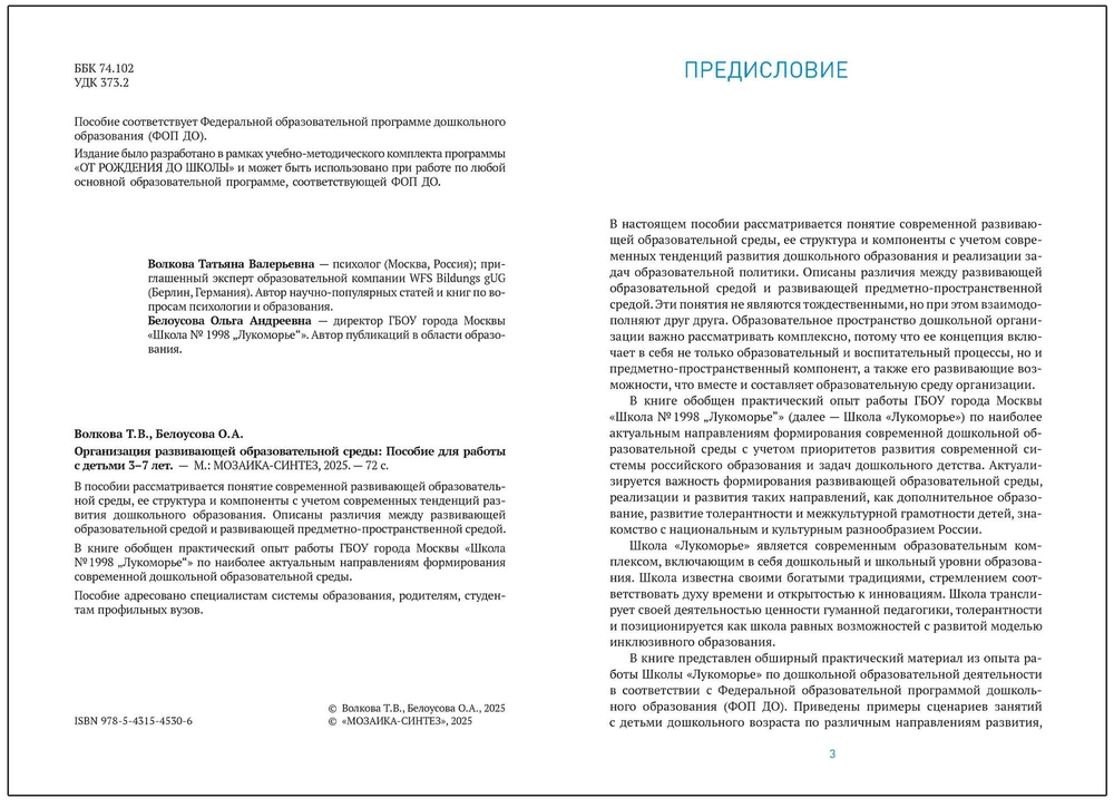 В пособии рассматривается понятие современной развивающей образовательной среды, ее структура и компоненты с учетом современных тенденций развития дошкольного образования. Описаны различия между развивающей образовательной средой и развивающей предметно-пространственной средой.