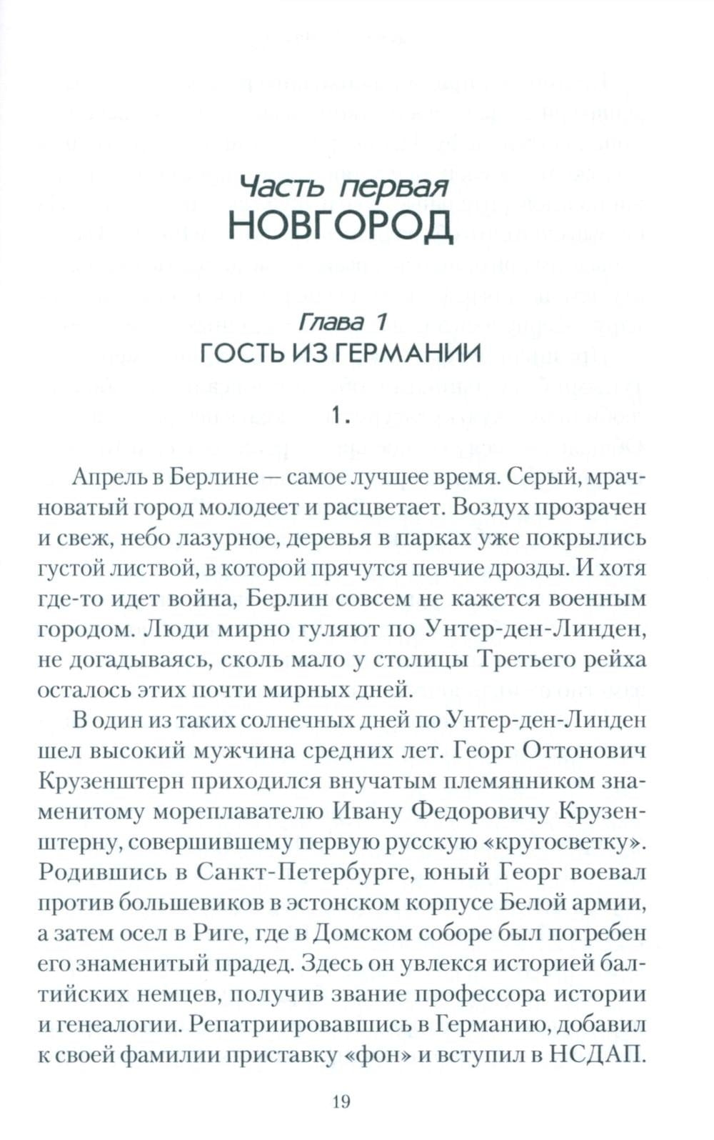 Накануне нападения на Советский Союз фашистской Германии в древний Новгород с тайной миссией приезжает сотрудник Оперативного штаба рейхсляйтера Розенберга Георг фон Крузенштерн.