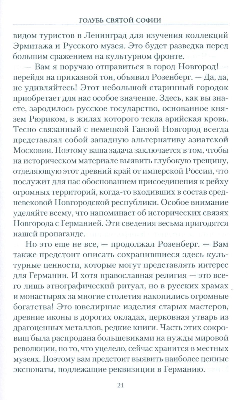 Так начинается документальный роман писателя и историка Виктора Смирнова о событиях, происходивших на оккупированных территориях Новгородчины во время Великой Отечественной войны и в первые послевоенные годы. В основу романа положены реальные события. Это и героическая эпопея спасения музейных сокровищ, и судьбы тех, кто встал на путь сотрудничества с оккупантами, а также поиски "золотого гроба Рюрика" и удивительная история дочери новгородского бургомистра, ставшей придворной художницей английской королевы.