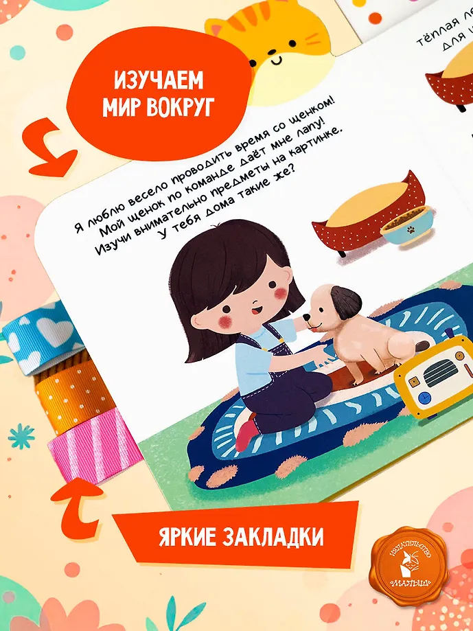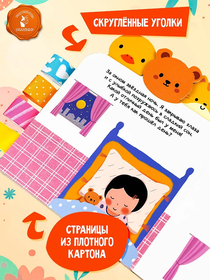 Красочная книга "Мой прекрасный день" поможет вам вместе с малышом проговорить основные дела в течение дня, сравнить предметы, изображённые в книге, с вещами, которые находятся дома.