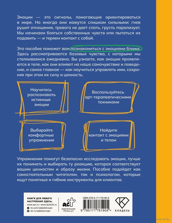 Упражнения помогут безопасно исследовать эмоции, лучше их понимать и выбирать ту реакцию, которая соответствует вашим ценностям и образу жизни. Пособие подойдет как самостоятельным читателям, так и психологам, которые ищут понятные и гибкие инструменты для клиентов.
