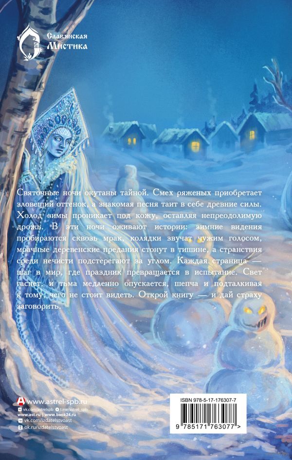Святочные ночи окутаны тайной. Смех ряженых приобретает зловещий оттенок, а знакомая песня таит в себе древние силы. Холод зимы проникает под кожу, оставляя непреодолимую дрожь. В эти ночи оживают истории: зимние видения пробираются сквозь мрак, колядки звучат чужим голосом, мрачные деревенские предания стонут в тишине, а странствия среди нечисти подстерегают за углом. Каждая страница – шаг в мир, где праздник превращается в испытание. Свет гаснет, и тьма медленно опускается, шепча и подталкивая к тому, чего не стоит видеть. Открой книгу – и дай страху заговорить.