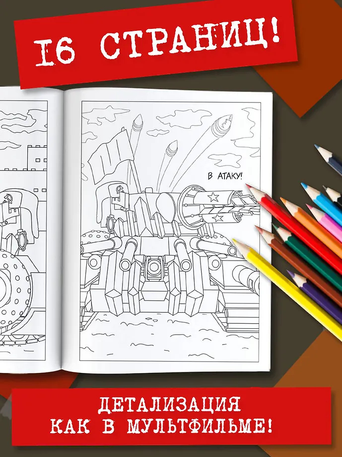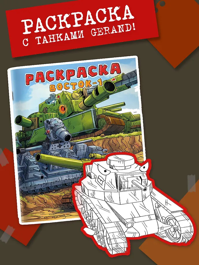 Динамичные батальные сцены и уникальные портреты легендарных героев мультика про танки Gerand! Пора добавить цвета настоящему подвигу!
