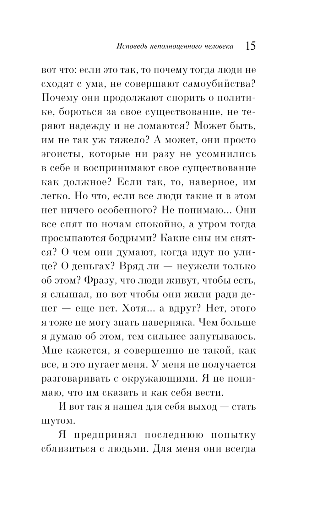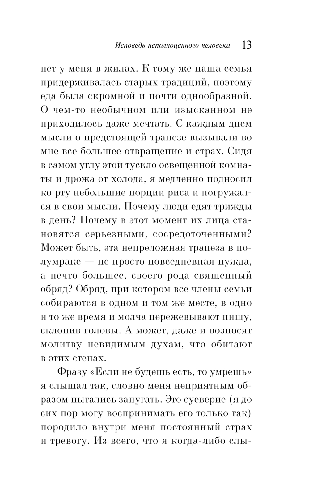 "Исповедь неполноценного человека" – самая известная его повесть, в которой исповедальная интонация достигает предельной силы. Герой книги, Ёдзо, не в силах найти место в обществе: он скрывает под маской шутовства свою глубокую отстраненность и мучительное чувство чуждости. Отчуждение, неумение любить и быть понятым, попытки заглушить внутреннюю пустоту алкоголем и страстями – всё это ведёт к его нравственному и физическому падению.