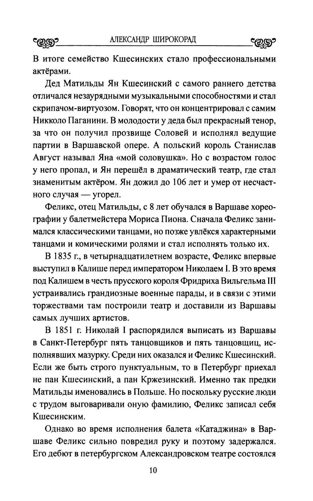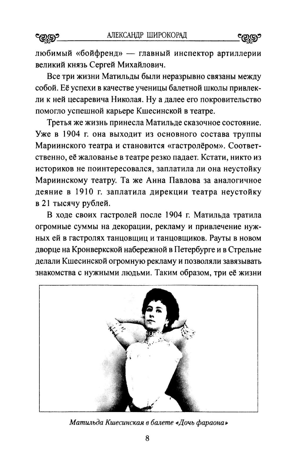 Матильда Кшесинская – не просто прима-балерина Мариинского театра, но и женщина, чья жизнь была полна любовных страстей, расставаний, интриг, вероломства, в которые вплетаются большая политика, большая коррупция и внимание спецслужб. От первых шагов на сцене Императорского театра до головокружительных романов с наследником престола и великими князьями, от триумфов и признания до трагических событий революции и эмиграции – каждый поворот судьбы Матильды Кшесинской был наполнен страстью и талантом.