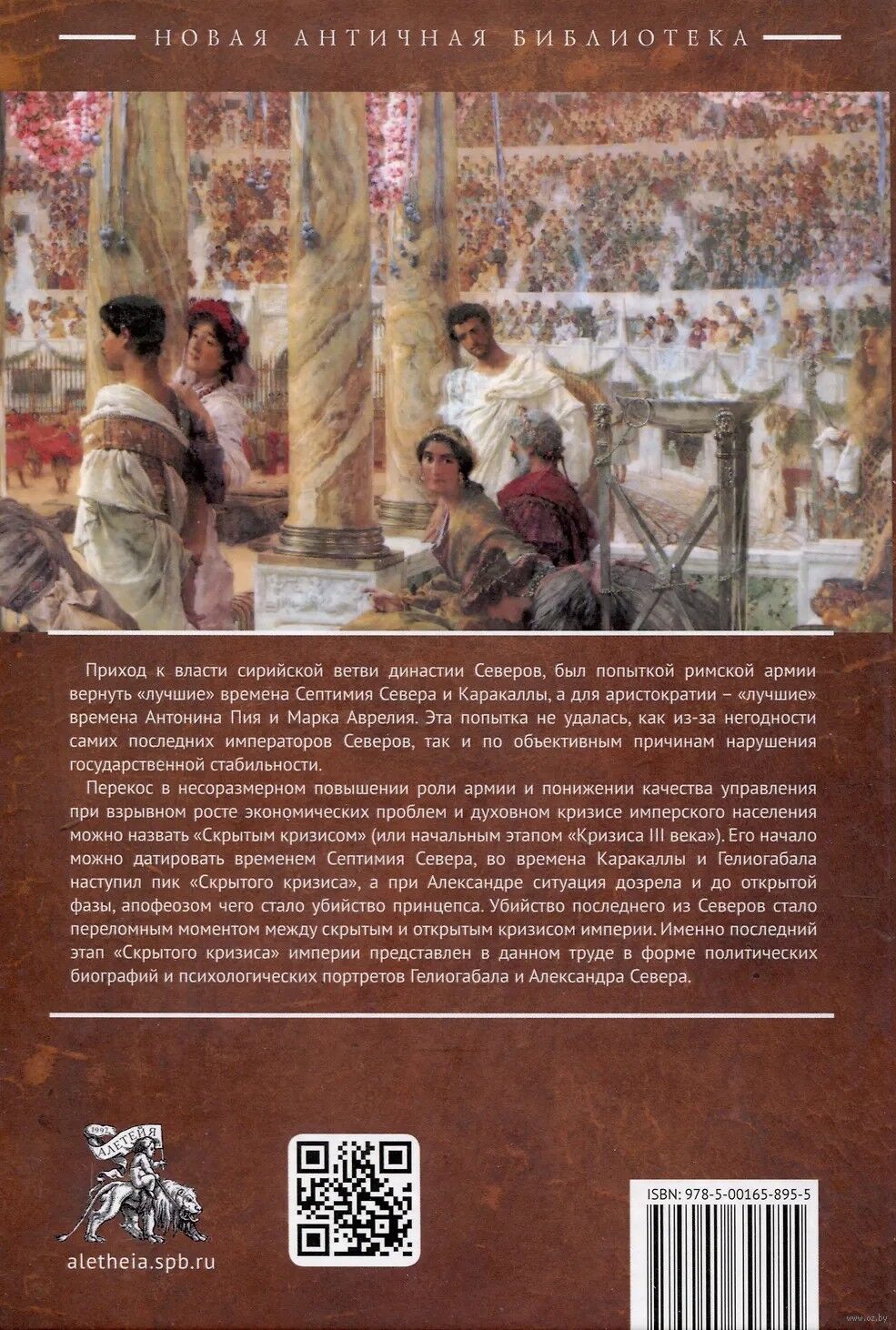 Именно последний этап "Скрытого кризиса" империи рассматривается в данном труде в форме политических биографий и психологических портретов Гелиогабала и Александра Севера.