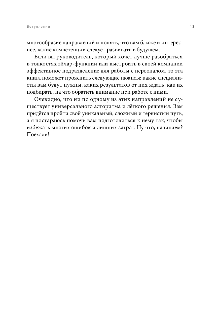 Эта книга – путеводитель по профессии HR для новичков, практиков и руководителей. Автор показывает, что за сухими функциями и процессами стоят люди, а работа с персоналом – стратегическая задача, напрямую влияющая на прибыль компании. Читатель узнает, какие бывают HR-специалисты, чем они занимаются, как формируется HR-подразделение и как построить сильную команду, способную удерживать таланты и развивать бизнес.