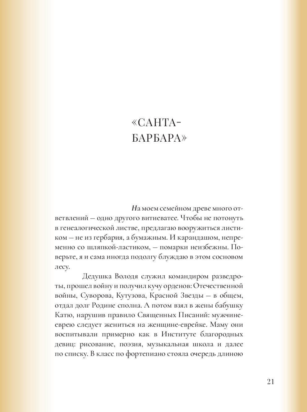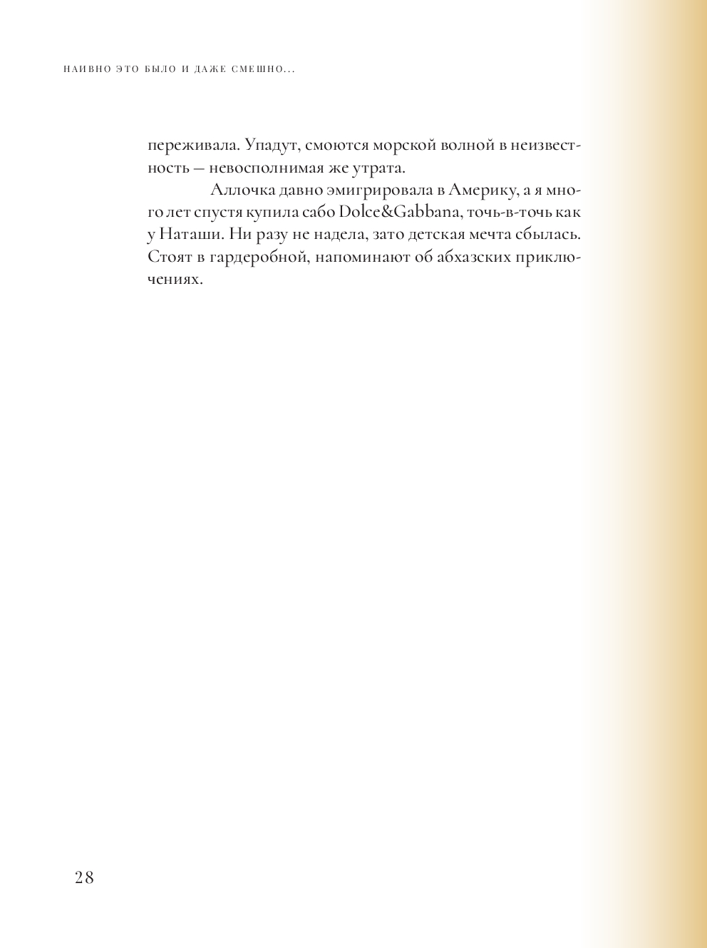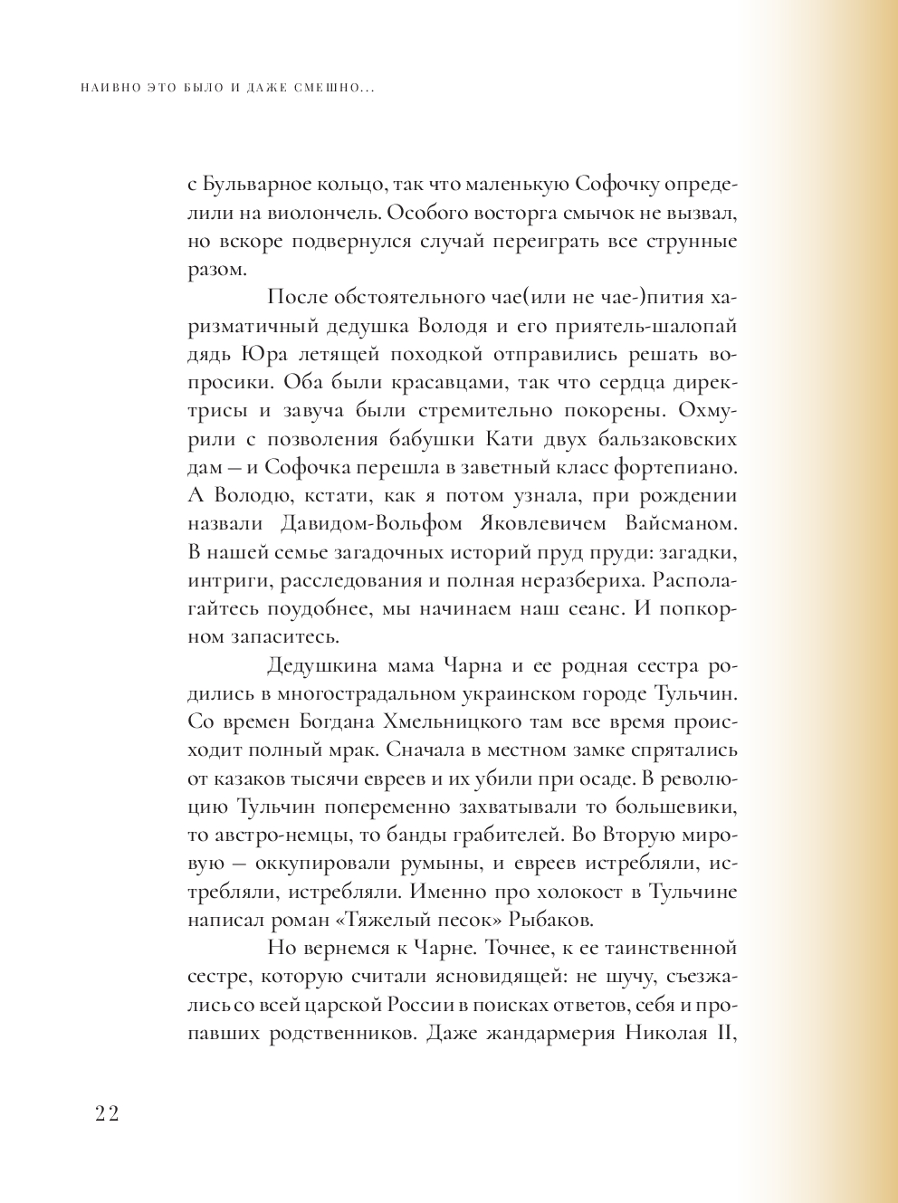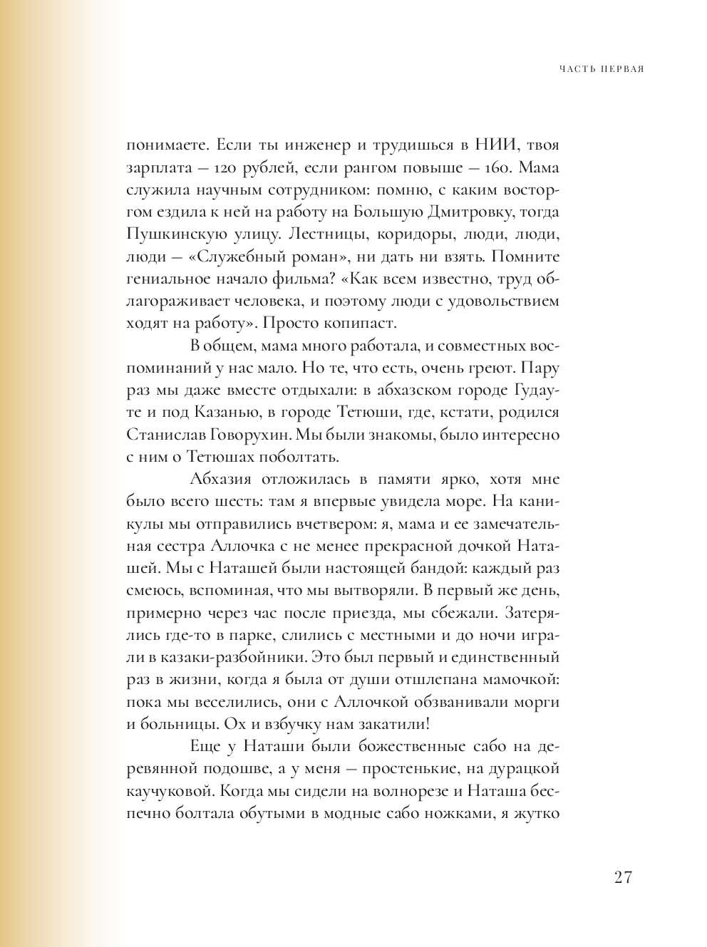 Откровенная и ироничная исповедь Светланы Бондарчук. Это не мемуары в классическом смысле, а собрание жизненных историй, наблюдений и уроков. Книга о том, как не бояться перемен, принимать ошибки и находить себя после всего. Без сожалений и обид. С самоиронией, благодарностью и светом. Светлана пишет о детстве, семье, любви, дружбе, разводе, взрослении и силе честности. Это рассказ женщины, которая познала боль и сохранила главное: достоинство, чувство юмора и здравый взгляд на жизнь.