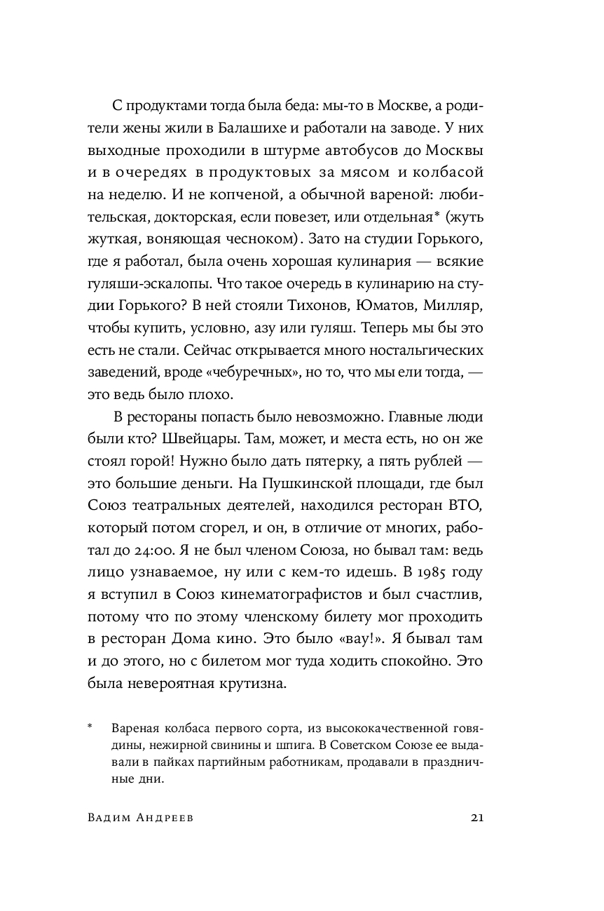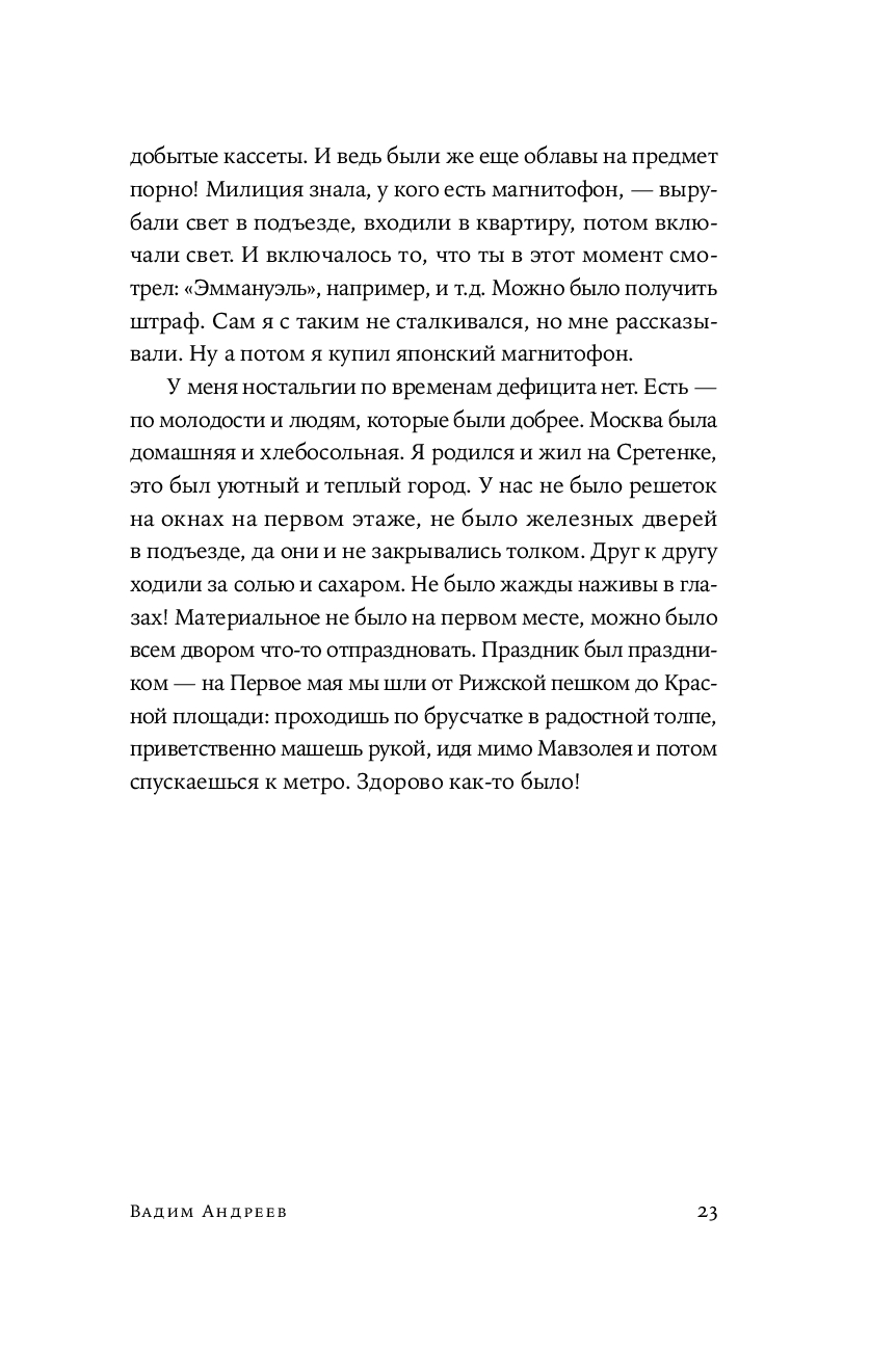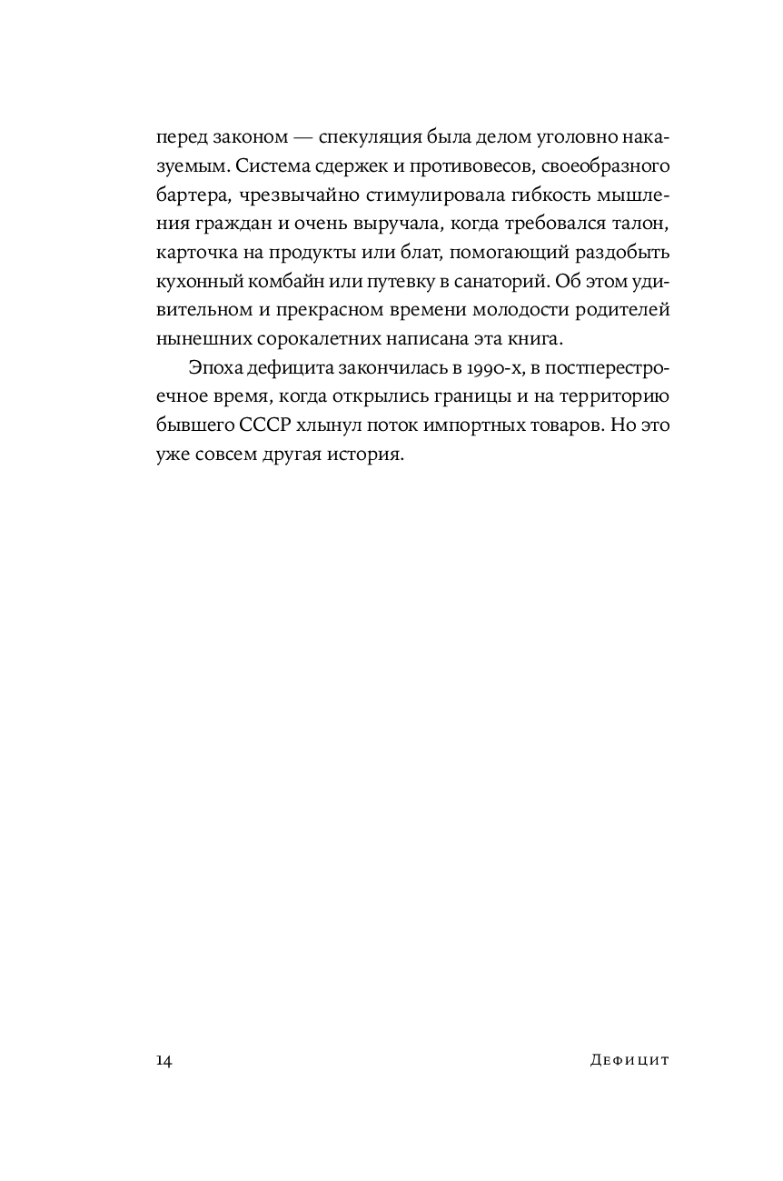 Сборник историй великих российских артистов, режиссеров и актеров об интереснейшем явлении в истории СССР – дефиците. Эта книга не только о том, на какие ухищрения шли люди, чтобы раздобыть самое необходимое – одежду и обувь, продукты, бытовую технику, книги, машины, билеты в театр и контакты нужных специалистов (врачей, сантехников, автослесарей) – она о самом времени и обстоятельствах, которые так или иначе коснулись почти каждого жителя страны. Это памятник ушедшей эпохе и подтверждение тому, что советский человек мог найти выход практически из любого положения и не поддавался унынию, и умел радоваться не только огромным победам, но и самым простым вещам.