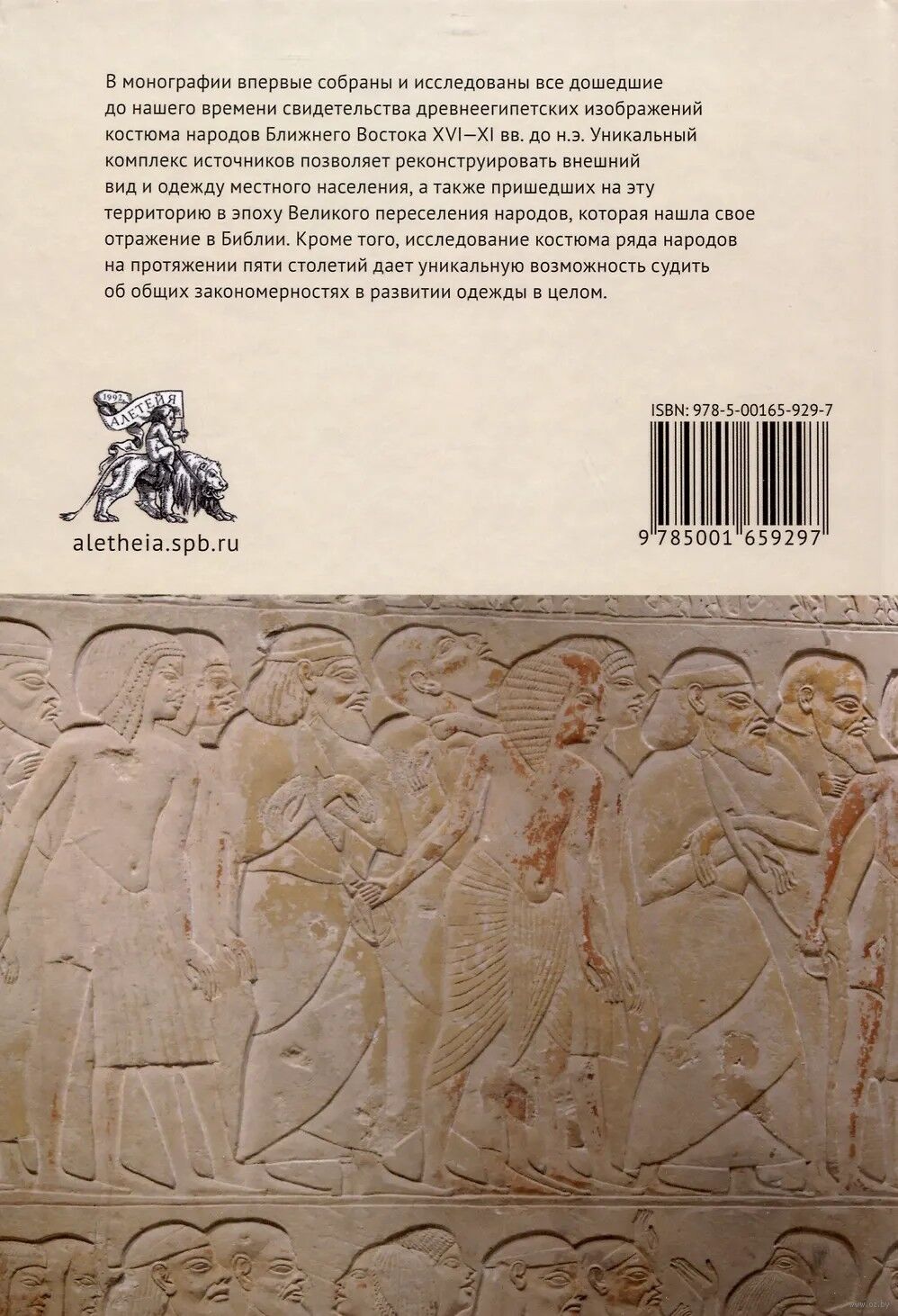 В монографии впервые собраны и исследованы все дошедшие до нашего времени свидетельства древнеегипетских изображений костюма народов Ближнего Востока XVI–XI вв. до н.э. Уникальный комплекс источников позволяет реконструировать внешний вид и одежду местного населения, а также пришедших на эту территорию в эпоху Великого переселения народов, которая свое отражение в Библии. Кроме того, исследование костюма ряда народов на протяжении пяти столетий дает уникальную возможность судить об общих закономерностях в развитии одежды в целом.