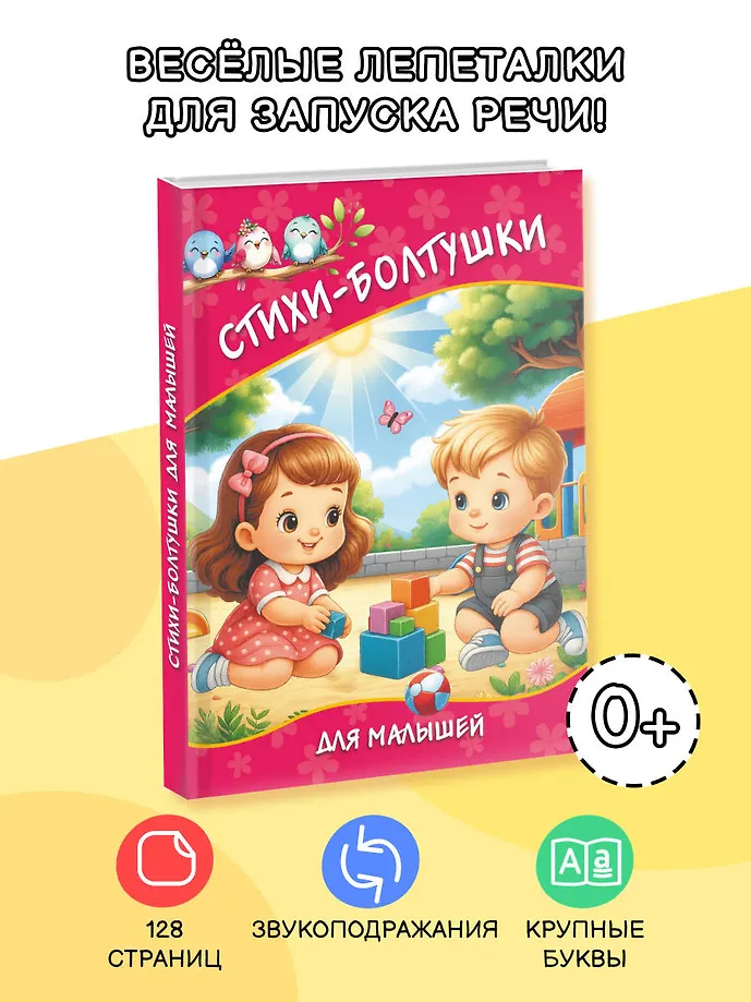 "Стихи-болтушки для малышей" – красочно иллюстрированная книга, которая создана для весёлого чтения и игры. В сборнике подборка простых и понятных ребёнку стихотворений, они легко ложатся на слух, быстро запоминаются и идеально подходят для запуска речи. Короткие добрые и веселые лепеталки, потешки и песенки помогут развить фразовую речь и обогатить словарный запас, научат малыша чувствовать ритм текста, запоминать и повторять небольшие строчки и звукоподражания. Благодаря интегральному переплету листы книги легко перекидываются из стороны в сторону, открываясь на 180 градусов и не закрываясь самостоятельно. Ребёнку – интересно и полезно, маме – удобно!