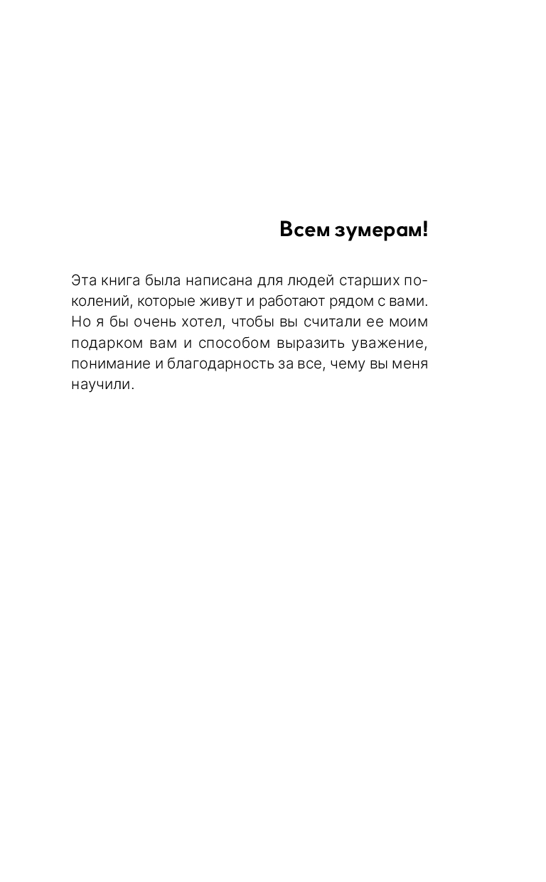 На страницах этой книги автор разрушает стереотипы, предрассудки и другие обидные и нелепые идеи, которые вредят и мешают жить как зумерам, так и всем, кто их окружает. А в том, что касается преодоления барьеров и разрушения ложных представлений, им просто нет равных.