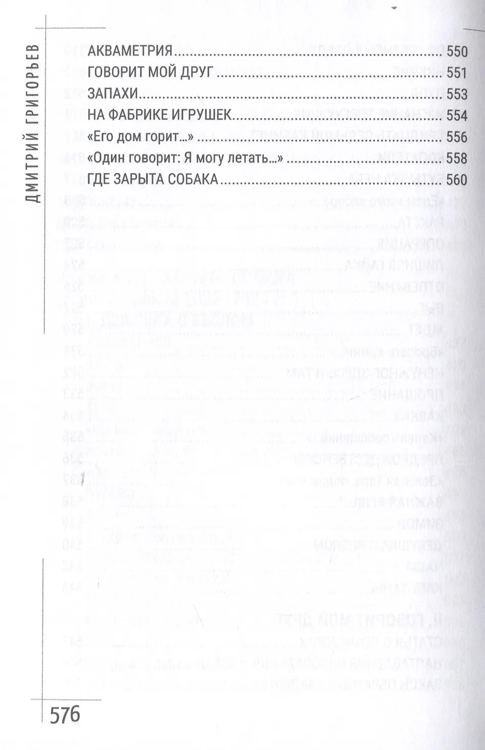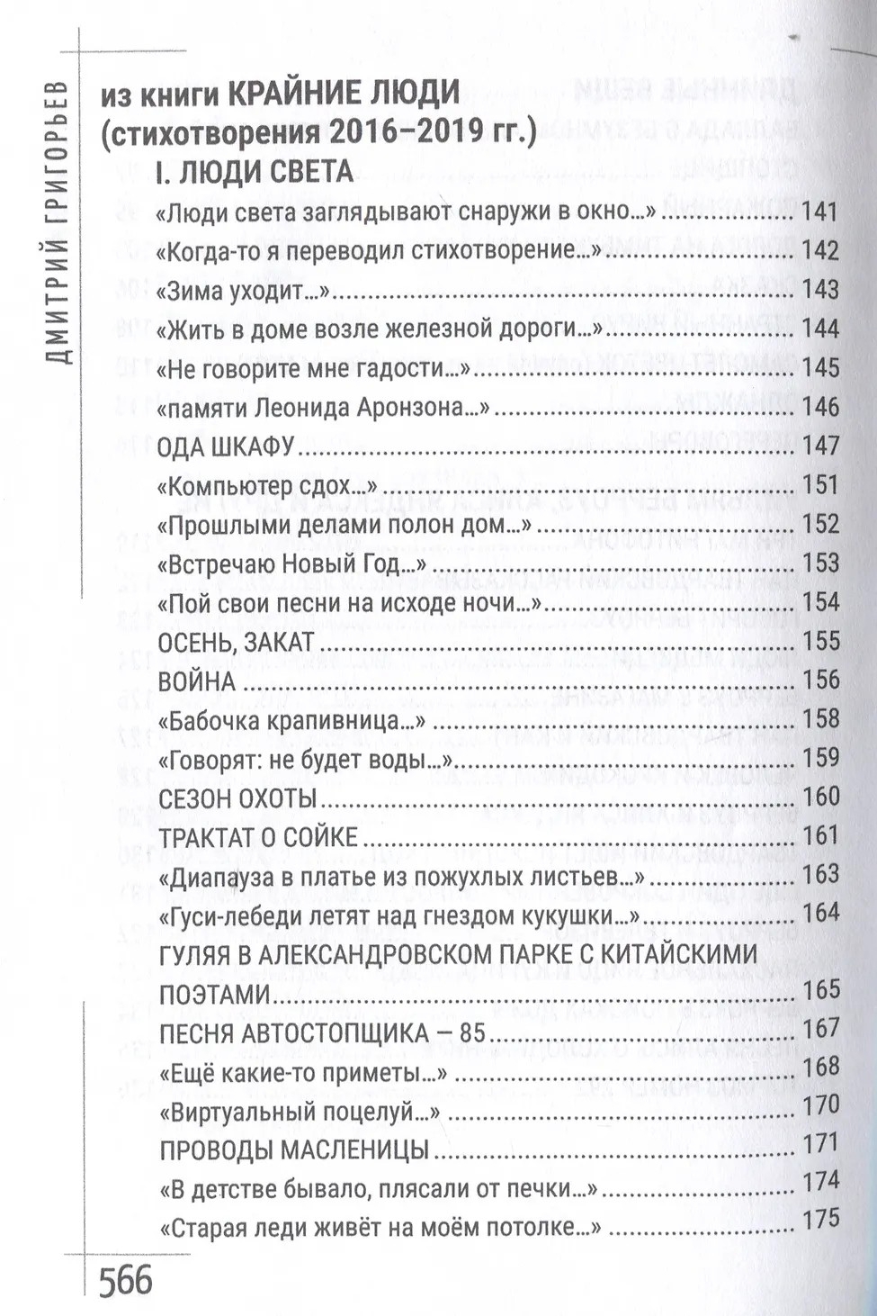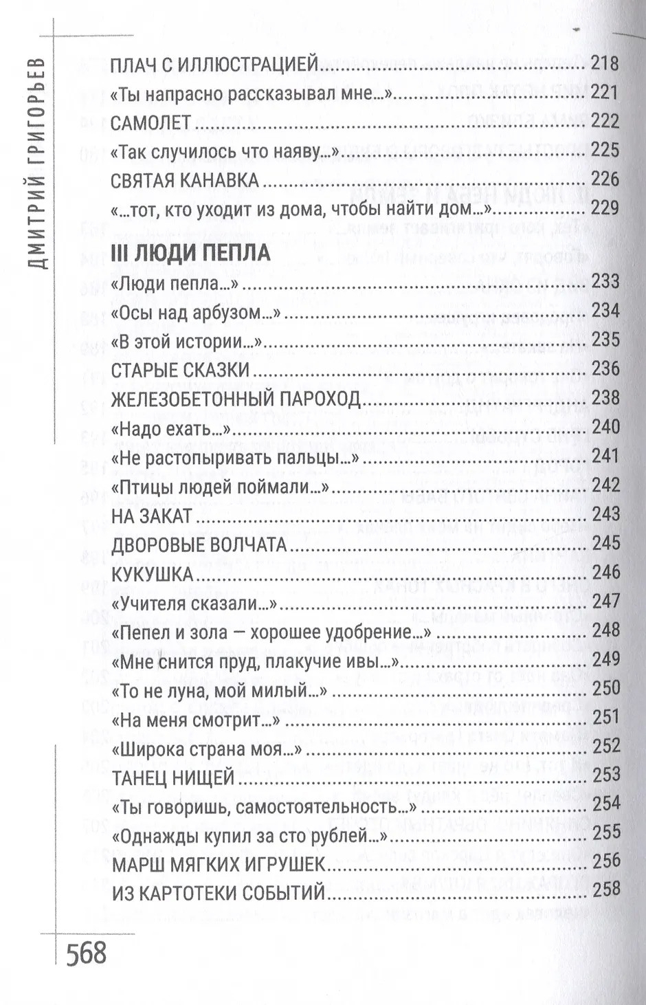 Лирика Григорьева затрагивает самые разные стороны нашего существования и может быть интересна людям, собакам, кошкам, деревьям, птицам, а также прочим обитателям этого и других миров.
