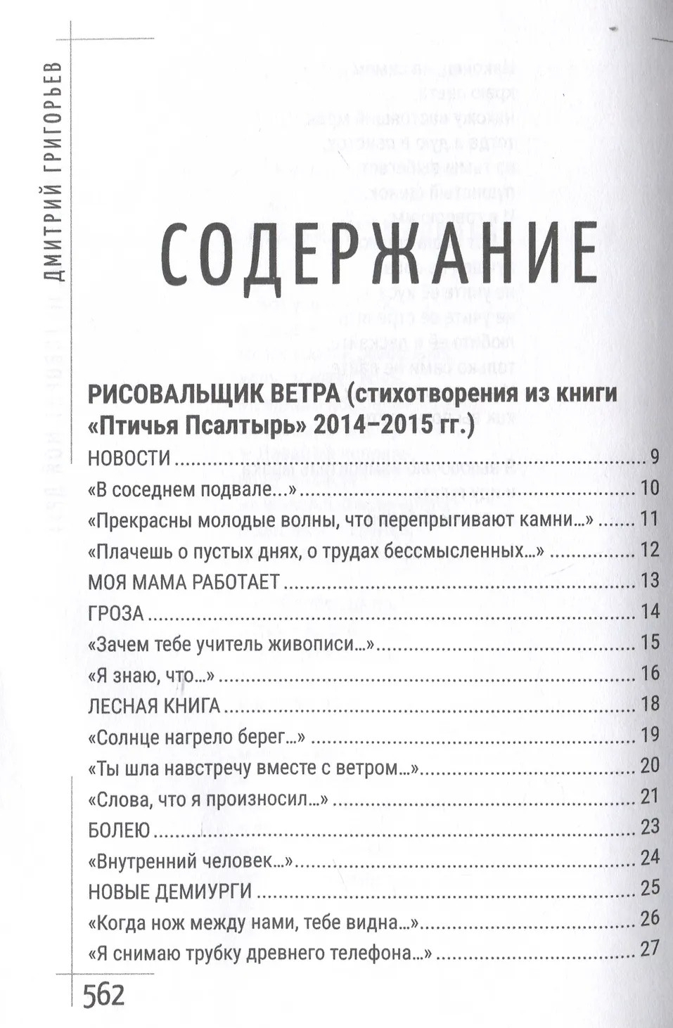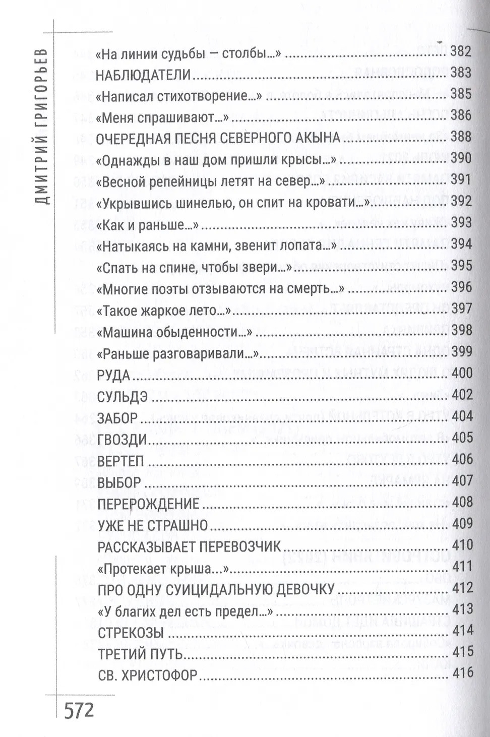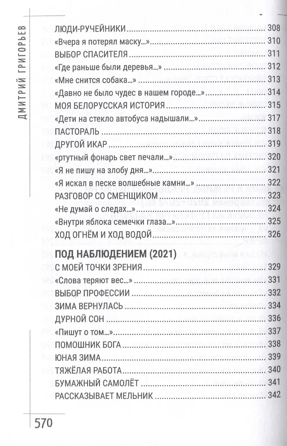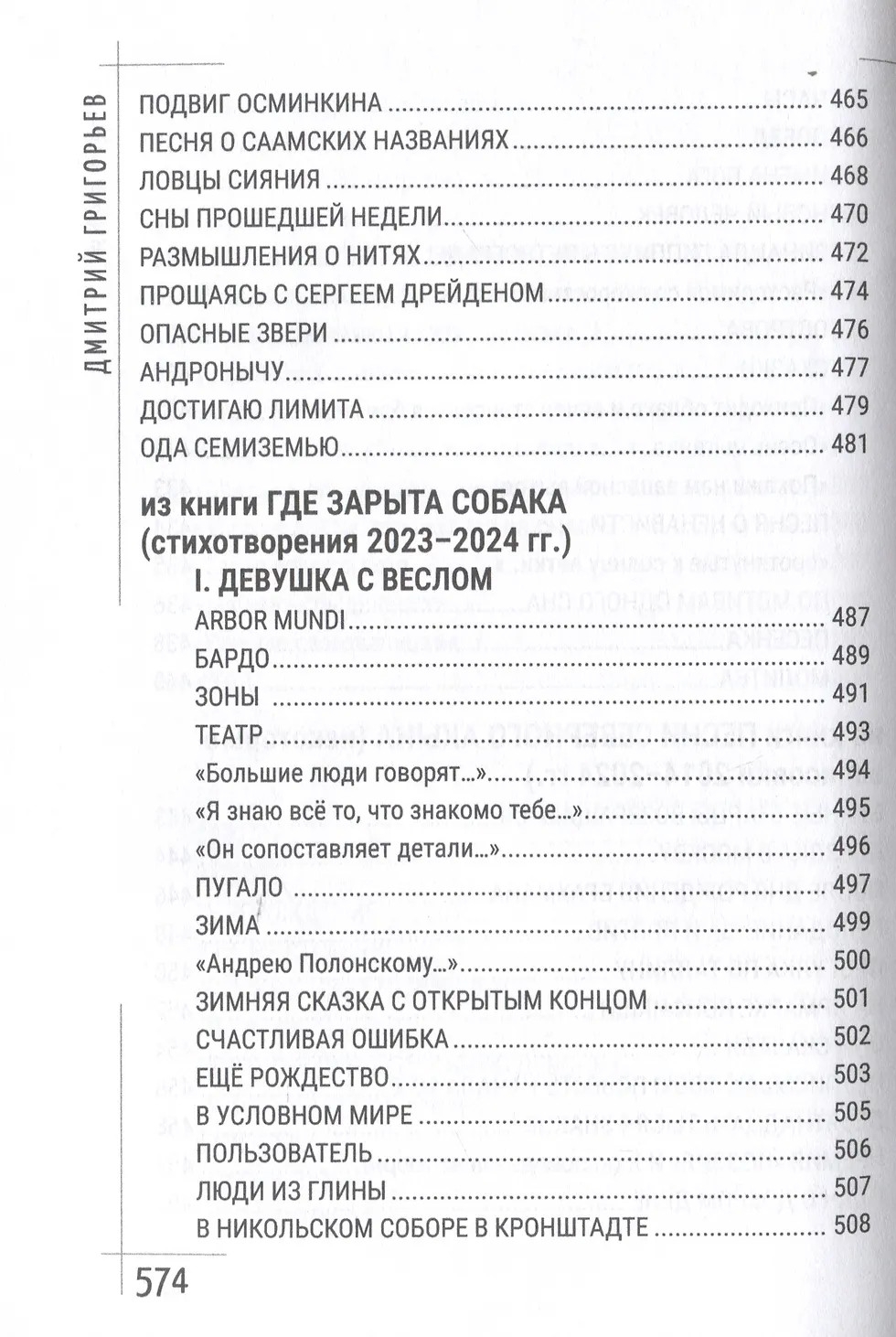 Лирика Григорьева затрагивает самые разные стороны нашего существования и может быть интересна людям, собакам, кошкам, деревьям, птицам, а также прочим обитателям этого и других миров.
